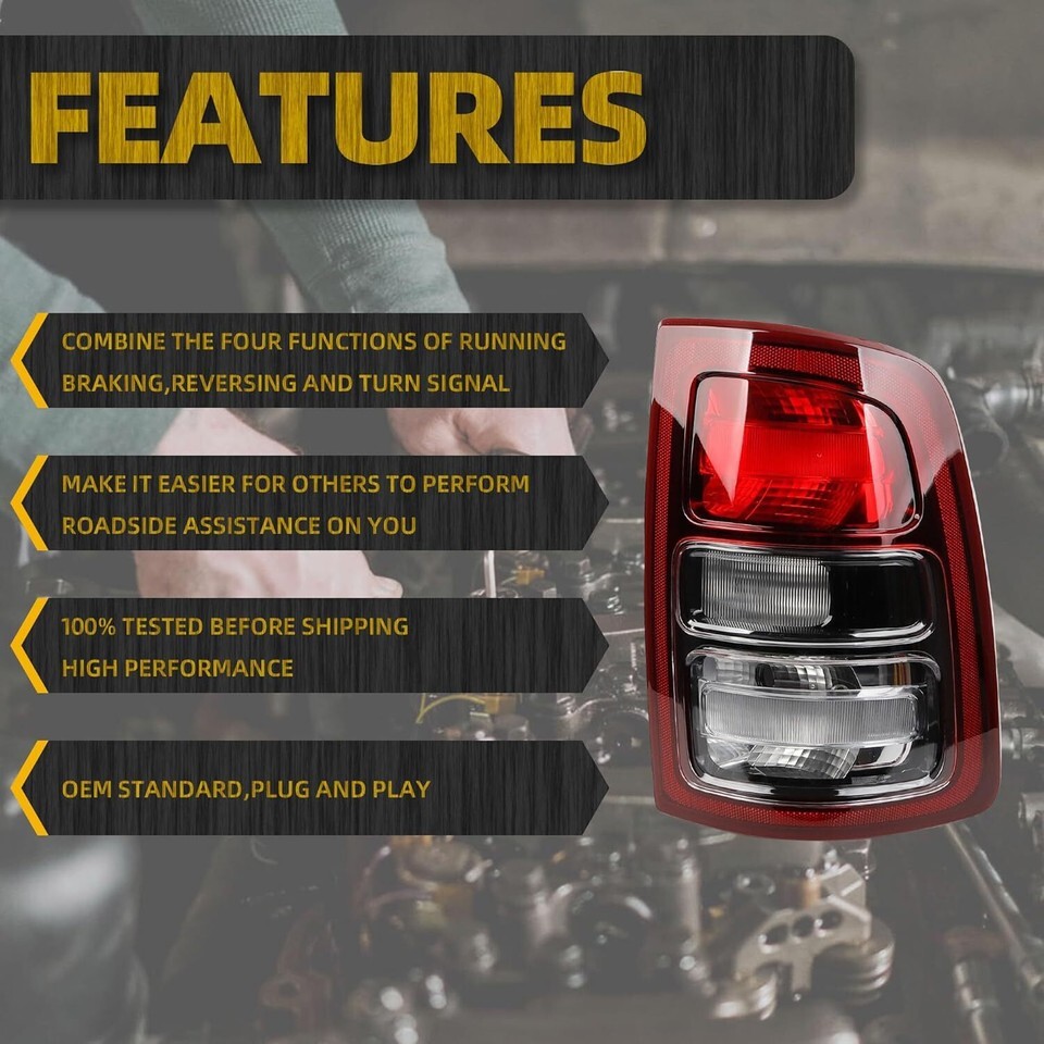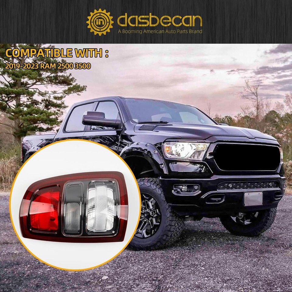 ?Fitment?The tail light Assembly Compatible with 2019-2023 Dodge Ram 2500 3509 ?Replace?Ram 2500 3500 tail light Assembly Replace# 68409002AD ?Advantage? The taillight is an halogen light source, which is brighter and can work perfectly in rainy and foggy weather, thus improving driving safety. ?Features?Dodge Ram 2500 3500 Rear Lamp is OEM Standard ,Made of high quality materials, Waterproof, dustproof, anti-fog and durable.With bulb and wiring harness ,direct installation ?Warranty?Ram 2500 3500 tail light can be returned and exchanged within 30 days with a one-year warranty