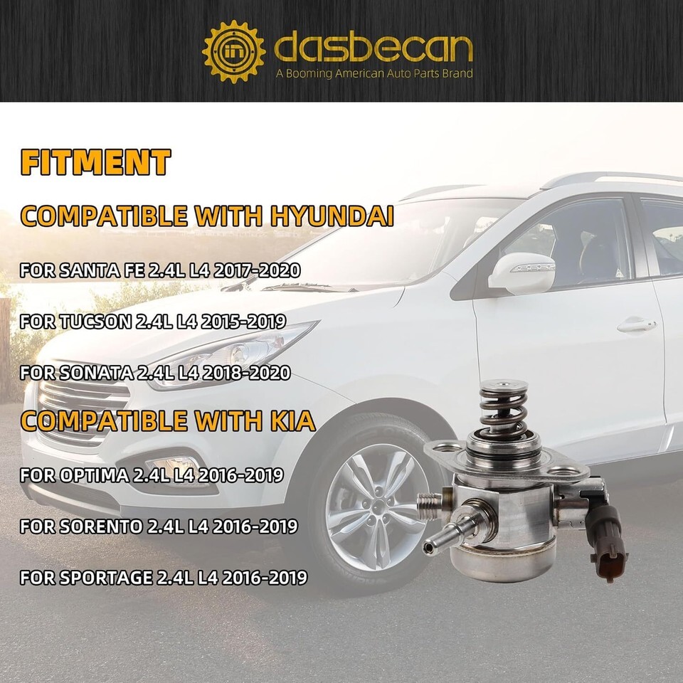 Dasbecan 35320-2GGA0 High Pressure Fuel Pump with Seal Compatible with Hyundai Santa Fe 2017-2020 Sonata 2015-2019 Tucson 2018-2020 Kia Optima Sorento Sportage 2016-2019 2.4L L4
