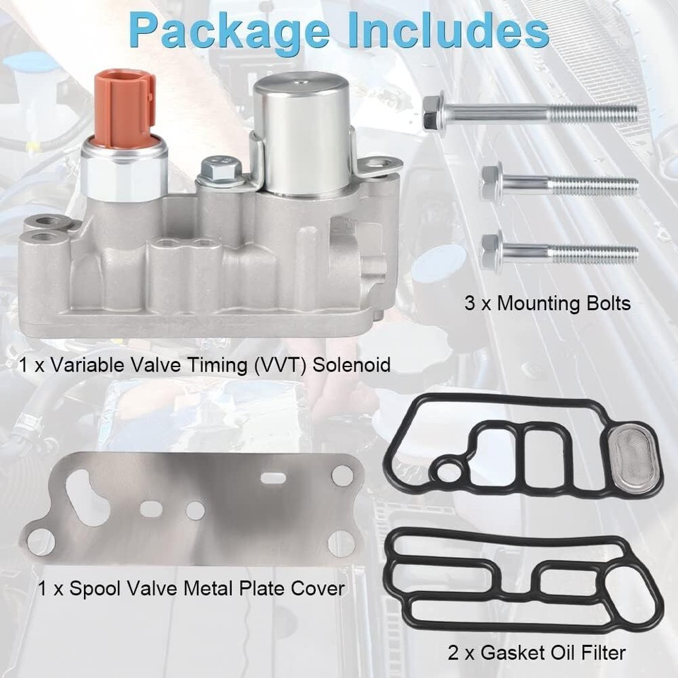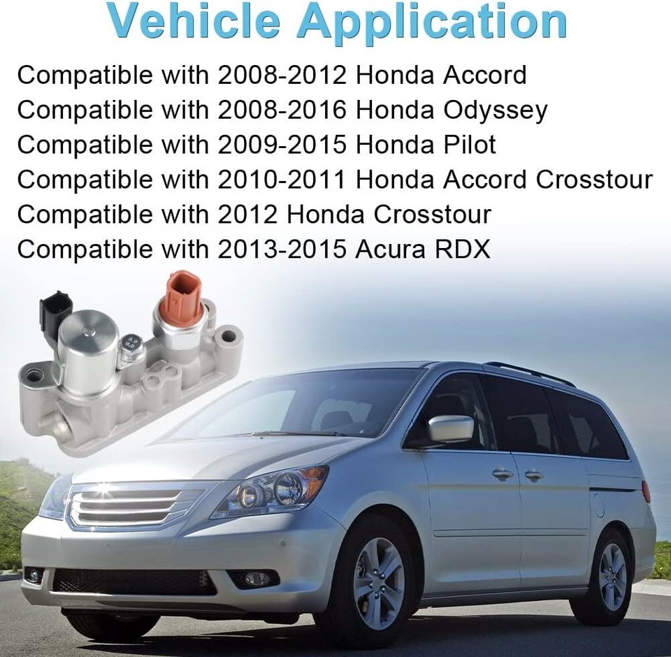 OEM Part Number: The engine VVT solenoid replacement for 15810-R70-A04 918-056 15810-R70-A03 Vehicle Application: The engine variable valve timing solenoid compatible with 2008-2012 Honda Accord 2008-2016 Honda Odyssey 2009-2015 Honda Pilot 2010-2011 Honda Accord Crosstour 2012 Honda Crosstour 2013-2015 Acura RDX Stable Performance: The VVT solenoid valve is precisely designed and 100% tested before shipment to ensure proper fit and performance Durable and Stable: Made of quality and reliable materials, it meets or exceeds OE specifications, has long service life and excellent performance Function: The spool solenoid valve is a part of the pneumatic and hydraulic system, and its function is to guide the flow of hydraulic fluid. It consists of rotating or sliding spool valves to block and open passages in the hydraulic system