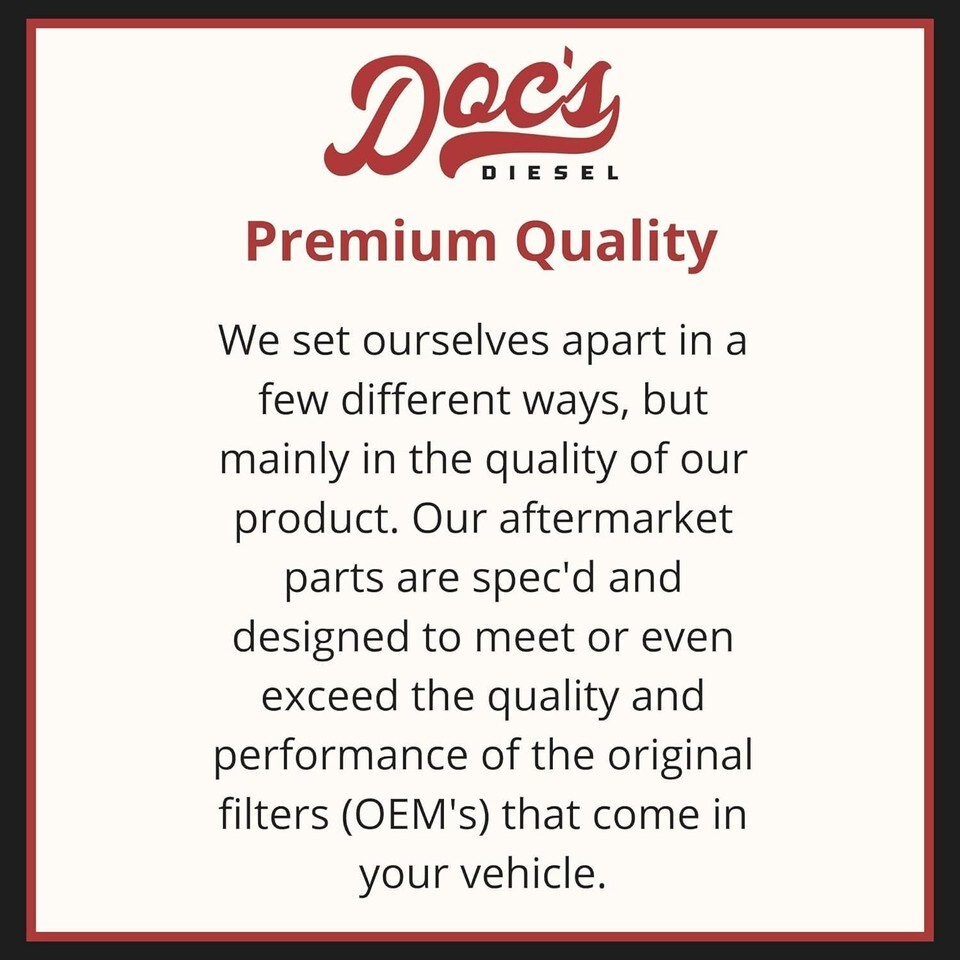 Spec'd and designed to meet or exceed your truck's original filters. Durable construction and high-flow filter media make Doc's filters a top-quality choice for drivers who want high quality parts for their truck.