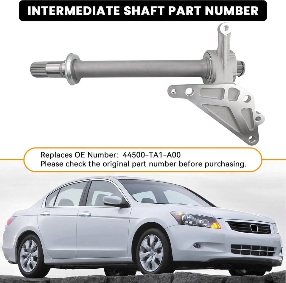 Replaces Part Number: 44500-TA1-A00, 44500TA1A00. Please check the original part number before purchasing. Vehicles Fitment-1: Compatible with Honda Accord 2008-2012 3.5L. EASY INSTALLATION: Easy to install, no need for extra installation tools, saves time and money, and has a long service life. High Quality Material: Made of durable material which is corrosion, direct replacement to your original unit. Package Include: 1 x Intermediate Shaft