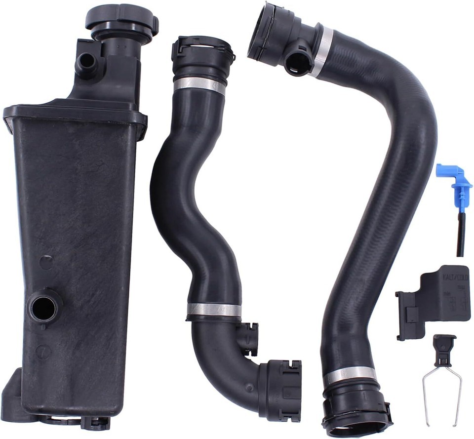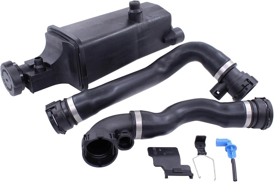 MOTOKU Radiator Coolant Reservoir Expansion Tank and Upper Lower Water Hoses Kit for BMW E46 328i 328Ci 330C 330i 330xi 325i 325xi 325Ci 1999-2006 Recovery Overflow Tank with Cap Sensor Clip