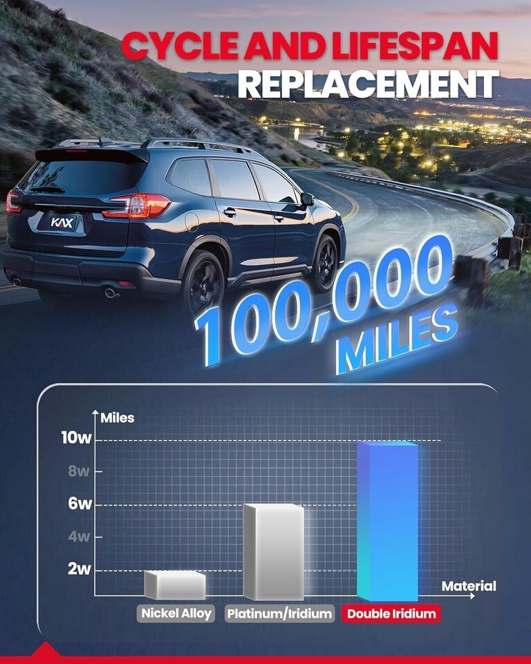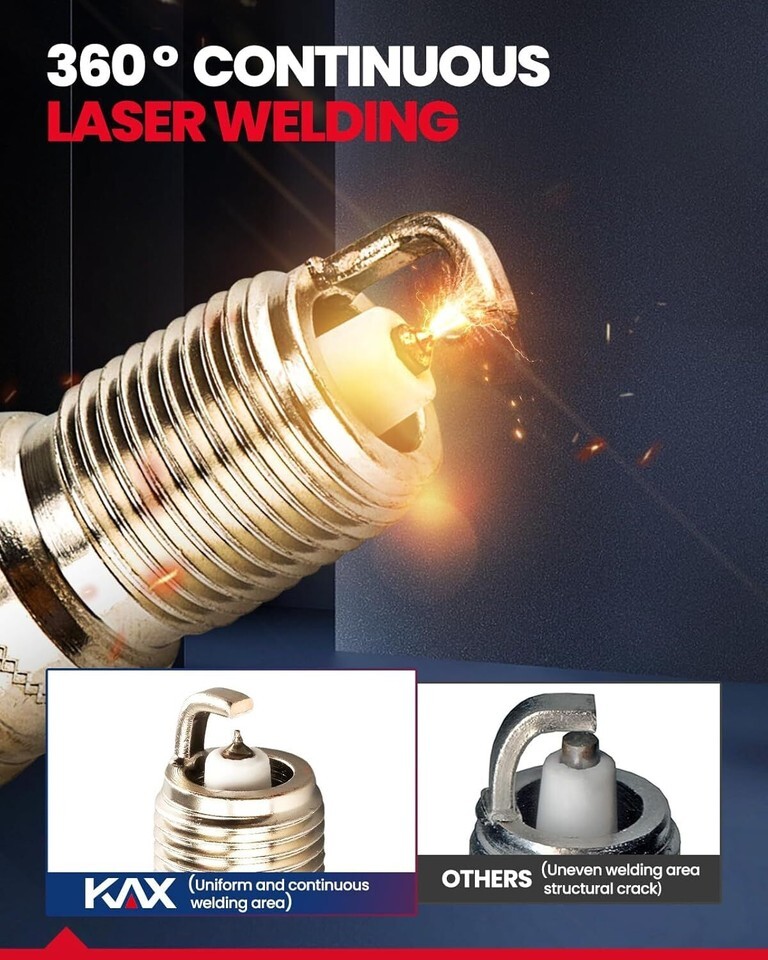 KAX Spark plugs adopts high-quality Iridium material, have a melting point 700 higher, and last 25% longer than similar platinum spark plugs. Iridium spark plugs have extremely thin electrodes that provide high ignition efficiency while maintaining excellent wear characteristics.