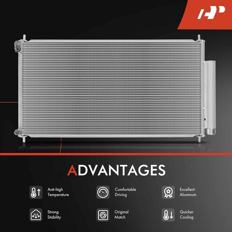 [OEM Fit Quality]: 100% Brand New Item. Direct Bolt-on OE Replacement A/C Condenser and Receiver Drier Assembly. [Vehicle Fitment]: Compatible with Honda Civic 2012 2013 2014 2015, 1.8L 2.4L ,Coupe, Except L4 1.8L CNG Engine [Attention Note]: Includes Receiver Drier Bracket. This aluminium ac condenser kit maximizes cooling efficiency and accelerates the heat dissipation. Please Check Fitment before ordering by using the Amazon's Confirmed Fit Tool above or checking the Product Description below [Reference Number]: 3976, 3976C, CN 3976PFC, CN3976PFC, 7-3976, 940340, 80110TB0003, 80110TS6H01, 80110TS4T01, HO3030157 [Buy with Confidence]: A-Premium offers a one-year unlimited-mileage guarantee on our meticulously crafted ac condenser assembly. We offer a wide variety of automotive accessory categories, ensuring that you can hit the road with peace of mind.