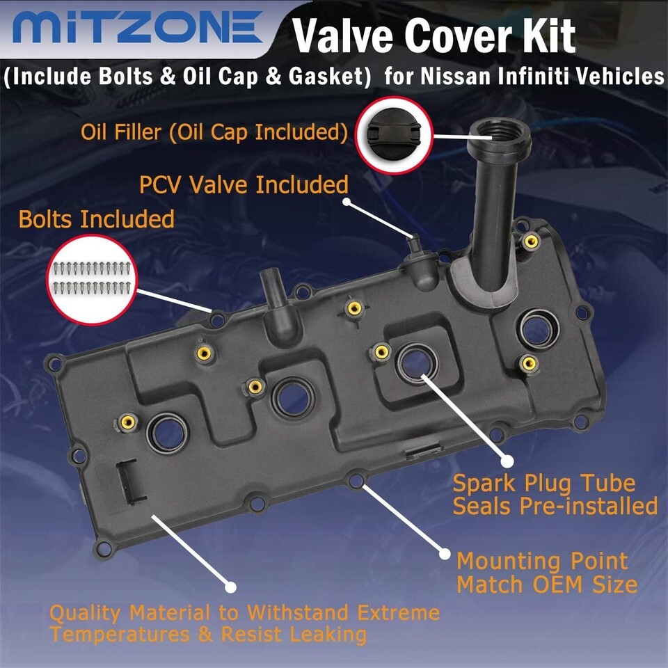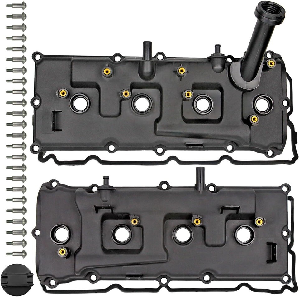 Valuable Choice: Complete Valve Cover Set (with Oil Filler Cap, Bolts, Gasket, Spark Plug Seals, PCV Valve) Ready to install. Valve cover comes with Pre-installed GASKETS, SPARK PLUG TUBE SEALS to make your install easier. Highly durable material, High sealing performance and no more leaks to protect your car engine better. Fits well and high performance make your car run powerfully and stably PACKAGE: Valve Cover Kit includes: 2 NEW Engine Valve Covers (Driver side Passenger Side) , 2 NEW Engine Valve Cover Gaskets, NEW Bolts, New Oil Cap, NEW Spark Plug Tube Seals Pre-installed, NEW PCV Pre-installed. NOTE: Please reference to the first picture as shown EXCAT MATCH: Engine: VK56DE V8 5.6L DOHC 2005-2015 Nissan Armada, 2012-2017 Nissan NV2500 , 2012-2017 Nissan NV3500, 2008-2012 Nissan Pathfinder Armada, 2004 Nissan Pathfinder, 2004-2015 Nissan Titan, 2004-20010 Infiniti QX56 OE Part NUMBER: Valve Cover: 13264-ZE01A, 13264-S010, 13264-ZE00A, 13264-S000. Gasket: 132707S000 PURCHASE WITH CONFIDENCE: If you are not sure about the vehicle fitment or any questions or concerns, please message us via amazon. We will resolve the issue to meet your satisfaction