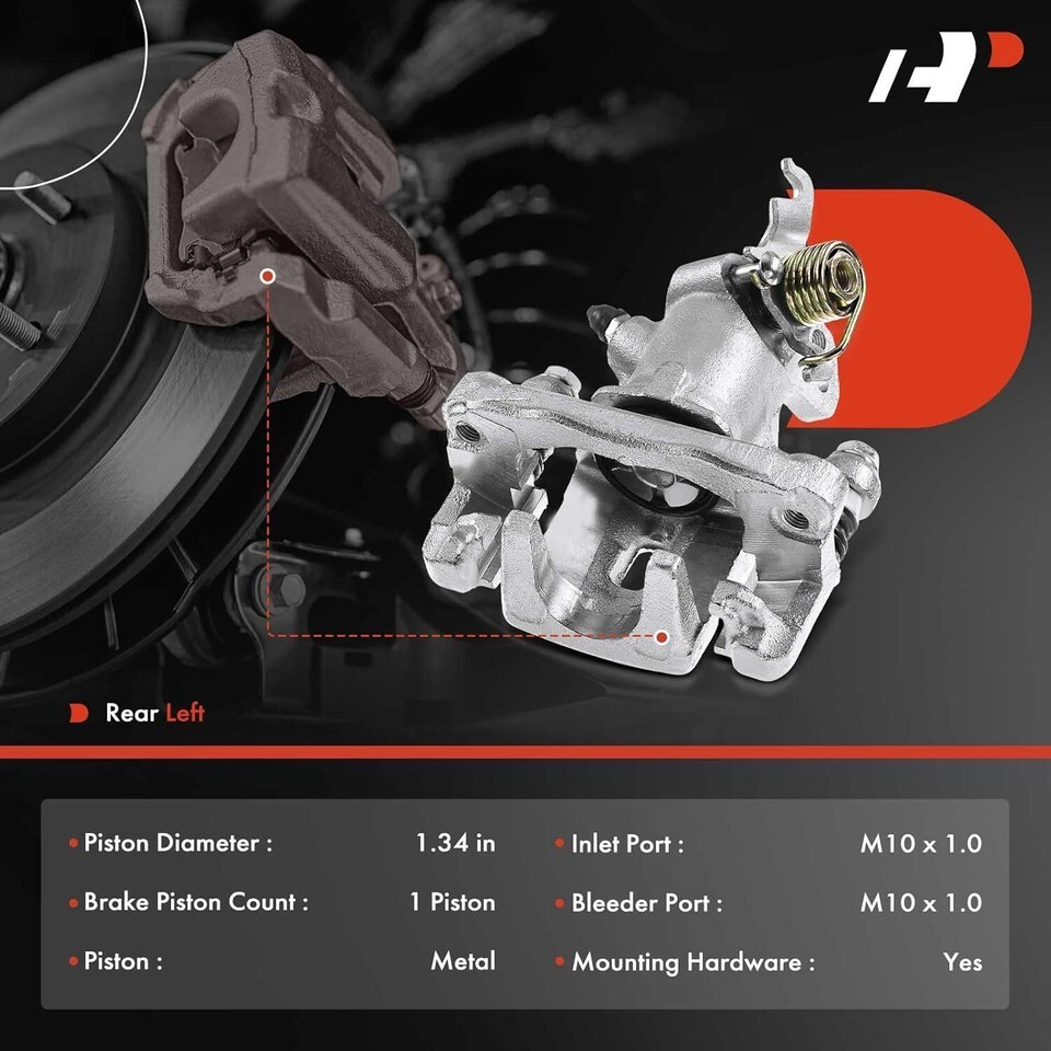 [Vehicle Fitment]: Compatible with Hyundai Elantra From 09/2004 to 2006; Tiburon From 04/22/2004 to 2008; Kia Spectra/ Spectra5 From 11/2004 to 2009---Please confirm the Production Date of the vehicle before order; Rear Driver Side [Reference Number]: 583102CA20, 583102CA31, 582102F300, 19-B3302 [Specification]: Brake Piston Count: 1 Pistons; Piston Size(OD): 1.34 inches; Inlet Port Size: M10 x 1.0; Bleeder Port Size: M10x 1.0; The Brake Calipers are coated with antirust coating, which can effectively prolong the service life [Directly Fit]: OE Replacement Brand New Brake Caliper Assembly, including Brake Caliper, Bracket, Metal Piston, Installation Hardwares. Please enter your vehicle information in the top left corner of listing and check our "Special Note" before ordering [Buy with Confidence]: A-Premium offers a one-year unlimited-mileage guarantee on our meticulously crafted disc brake caliper. We offer a wide variety of automotive accessory categories, ensuring that you can hit the road with peace of mind.