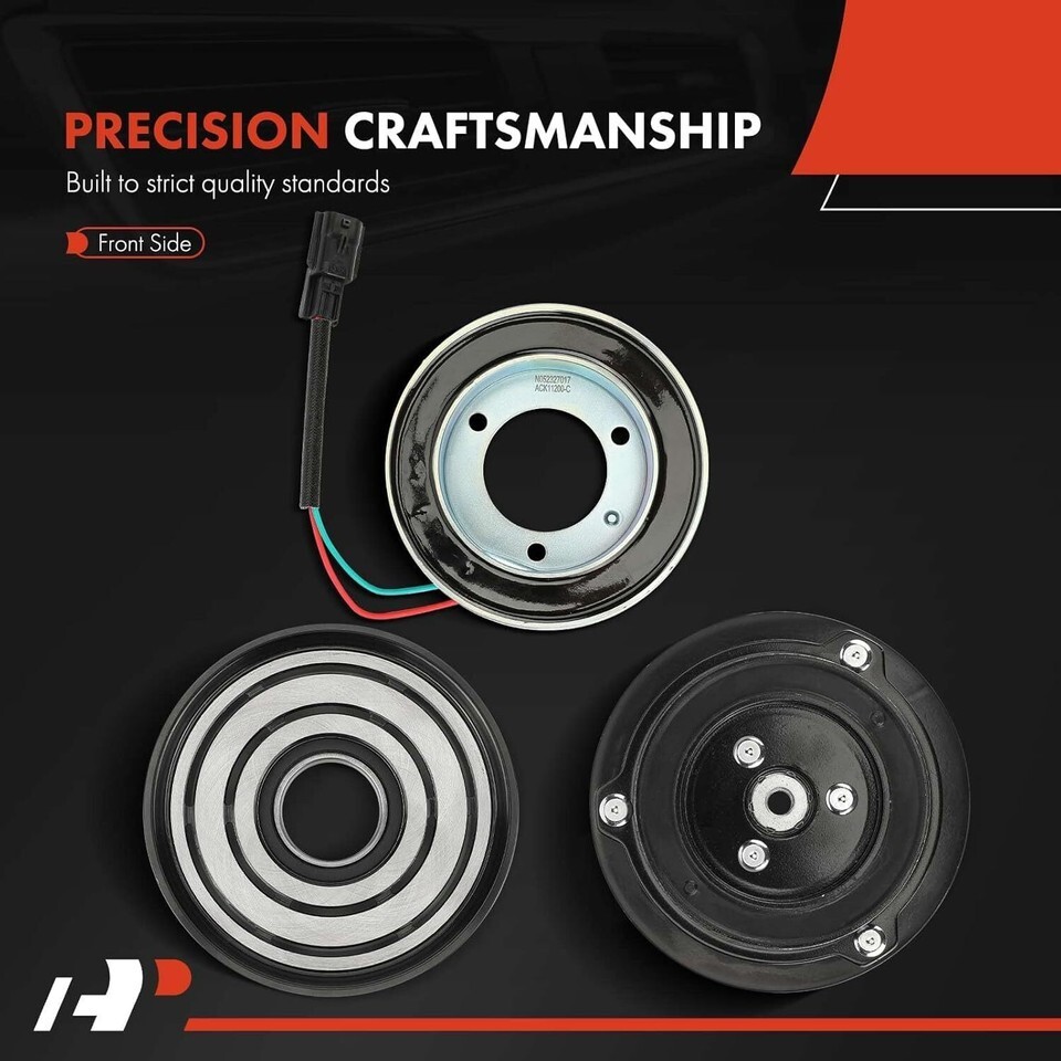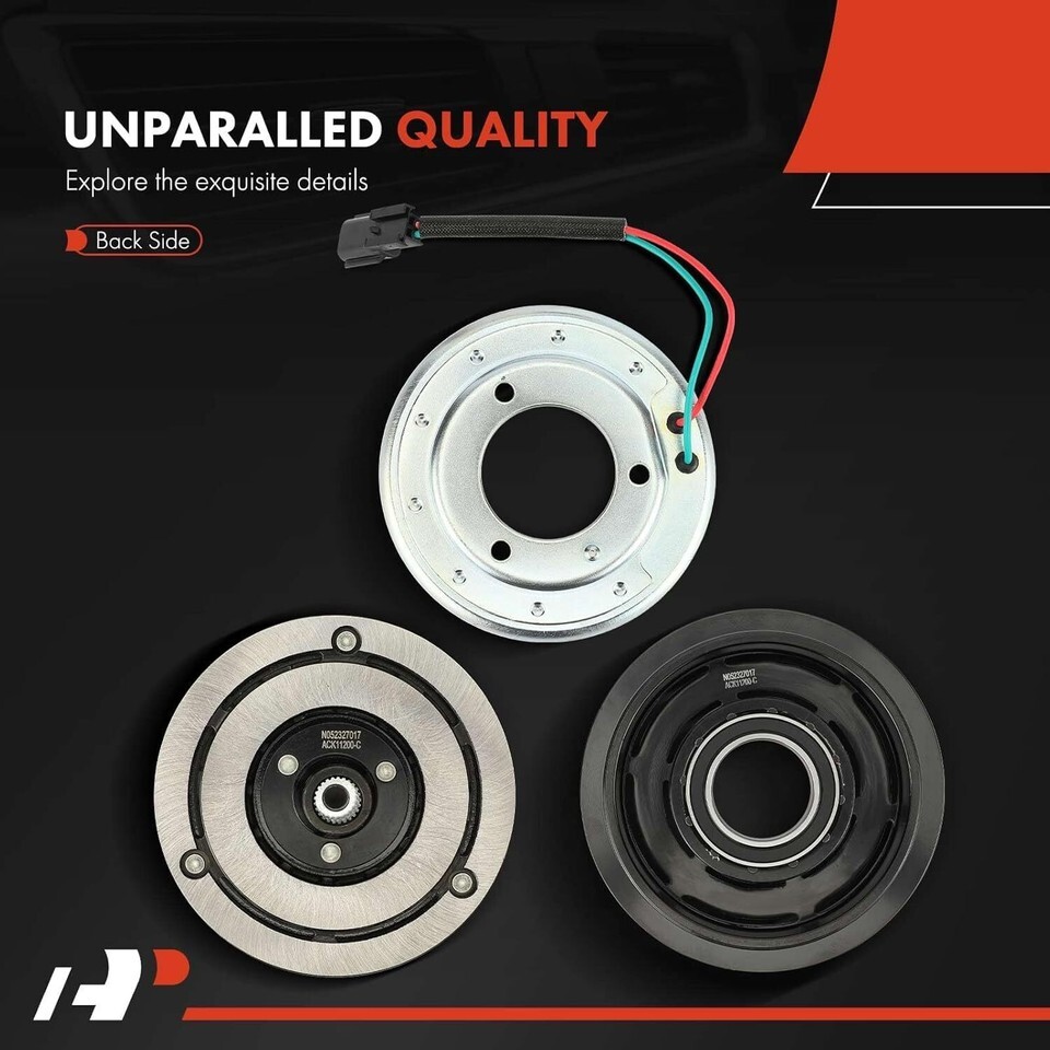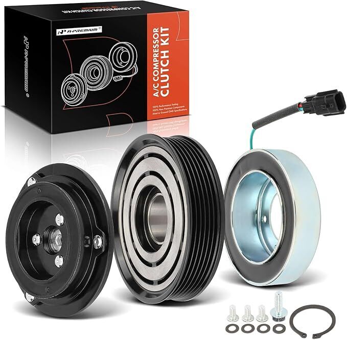 [Specifications]: ?Compressor Style: DKS17D; ?Pulley Groove Quantity: 6; ?Pulley Diameter (MM): 125; ?Voltage: 12V [Vehicle Fitment]: Compatible with Nissan Rogue 2008-2013 2.5L [Package Content]: This Kit Included: 1x Pulley With Bearing, 1x Front Plate, 1x Electromagnetic Coil, 1 Pack of Accessories (1x Retaining Clip, 4x Shims, 4x Bolts) [Special Note]: Please enter your vehicle information in the top left corner of the listing and check our Special Notes before ordering [Buy with Confidence]: A-Premium offers a one-year unlimited-mileage guarantee on our meticulously crafted A/C Compressor Clutch Kit. We offer a wide variety of automotive accessory categories, ensuring that you can hit the road with peace of mind