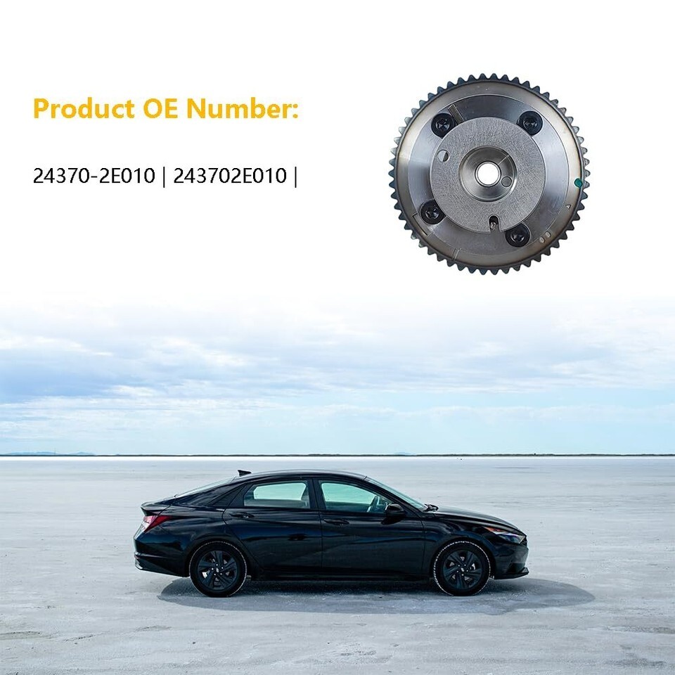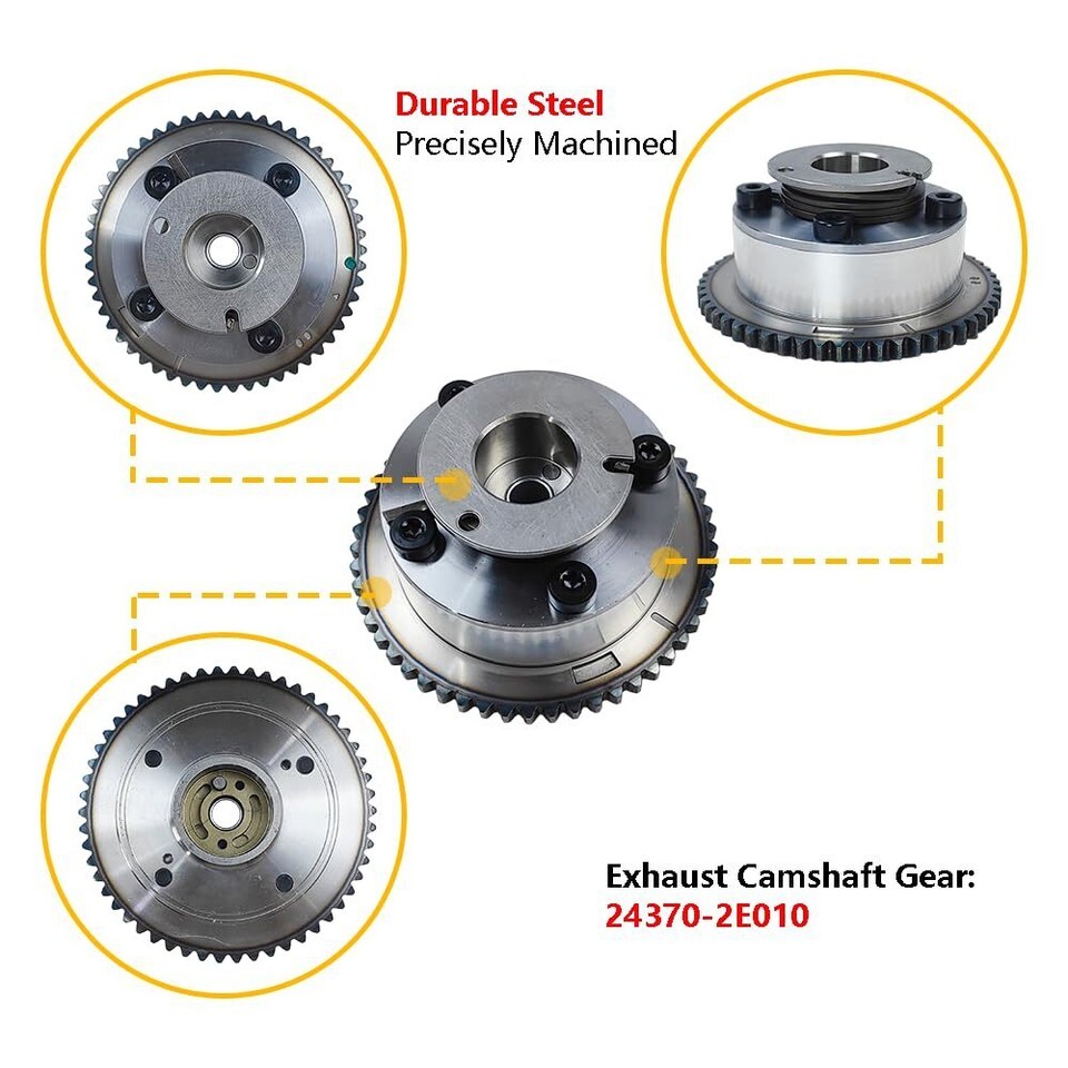 Package Includes: 1X Exhaust Camshaft Gear | Product OE #: 24370-2E010 | 243702E010 | Compatible with: Hyundai | 2011-2015 Hyundai Elantra | 2013-2014 Hyundai Elantra GT | Kia | 2014-2016 Kia Forte | 2014-2016 Kia Forte Koup | 2012-2013 Kia Soul | Warranty: For any reason, if you are not satisfied with your purchase, contact us directly. We offer 1-year warranty, 100% satisfaction guarantee.