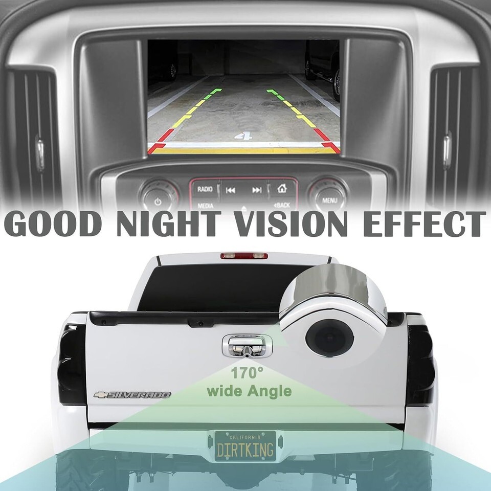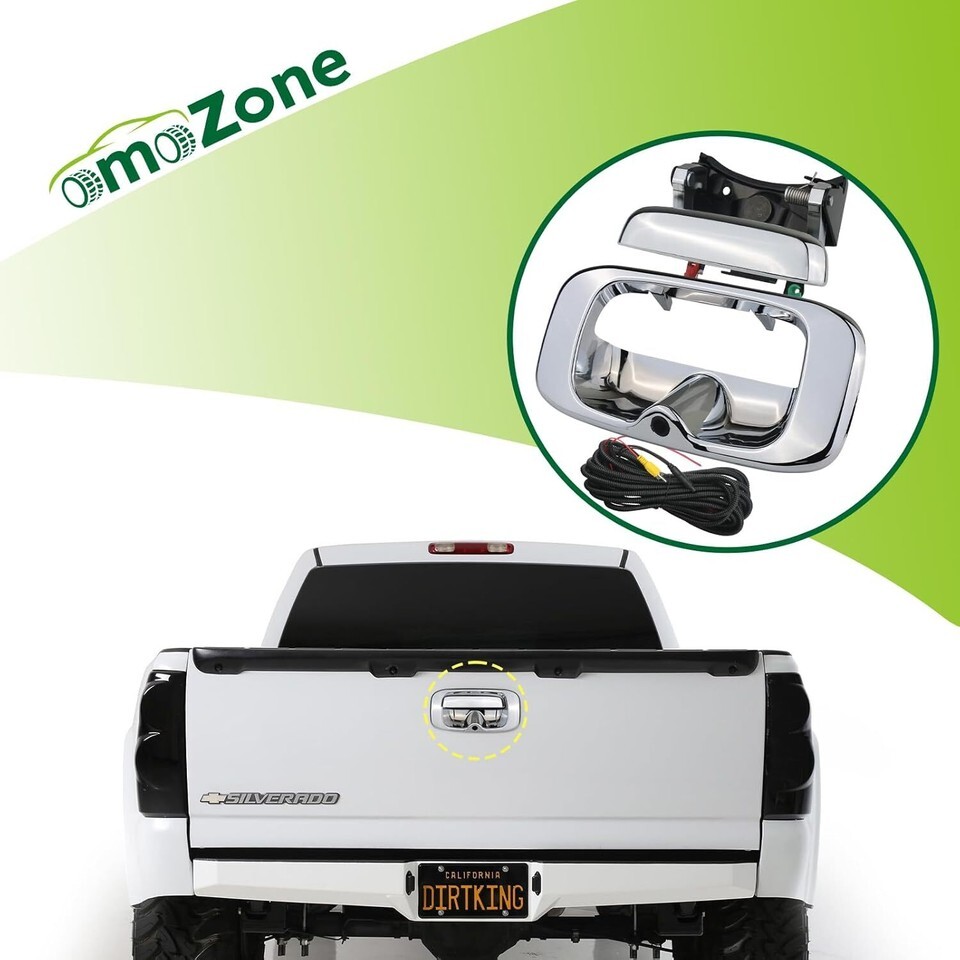 COMPATIBLE WITH: The tailgate handle with backup camera fit for Chevy Silverado 1500 1500 HD 2500 2500 HD 3500 classic 1999 2000 2001 2002 2003 2004 2005 2006 2007 99 00 01 02 03 04 05 06 07 COMPATIBLE WITH: The tailgate handle and bezel trim compatible with GMC Sierra 1500 1500 HD 2500 2500 HD 3500 classic 1999 2000 2001 2002 2003 2004 2005 2006 2007 99 00 01 02 03 04 05 06 07,Please refer to the vehicle compatibility above to ensure proper part FEATURES: The chrome rear door handle is made of good plastic and metal,rear view camera using high-definition sensor,clear image, good night vision effect,and waterproof, durable,corrosion resistance,170perfect view Angle design and wide field of view without blind spots,to help you safely,reverse and park,and the parking line is equipped with "ON/OFF" switch, solve your safe driving problems SERVICE LIFE EASY INSTALLATION: This rear view camera tail gate latch handle is not the real original parts,but it uses advanced technology and good materials in line with oem standards,more effective extension of service life,our reverse parking camera comes with universal RCA connector,Connect directly to your pickup's aftermarket surveillance/video receiver for easy installation, saving you time and money BUY WITH CONFIDENCE: If you have any questions or concerns about the exterior lift gate handle with back up camera,please tell by email and we will provide you with satisfactory service support