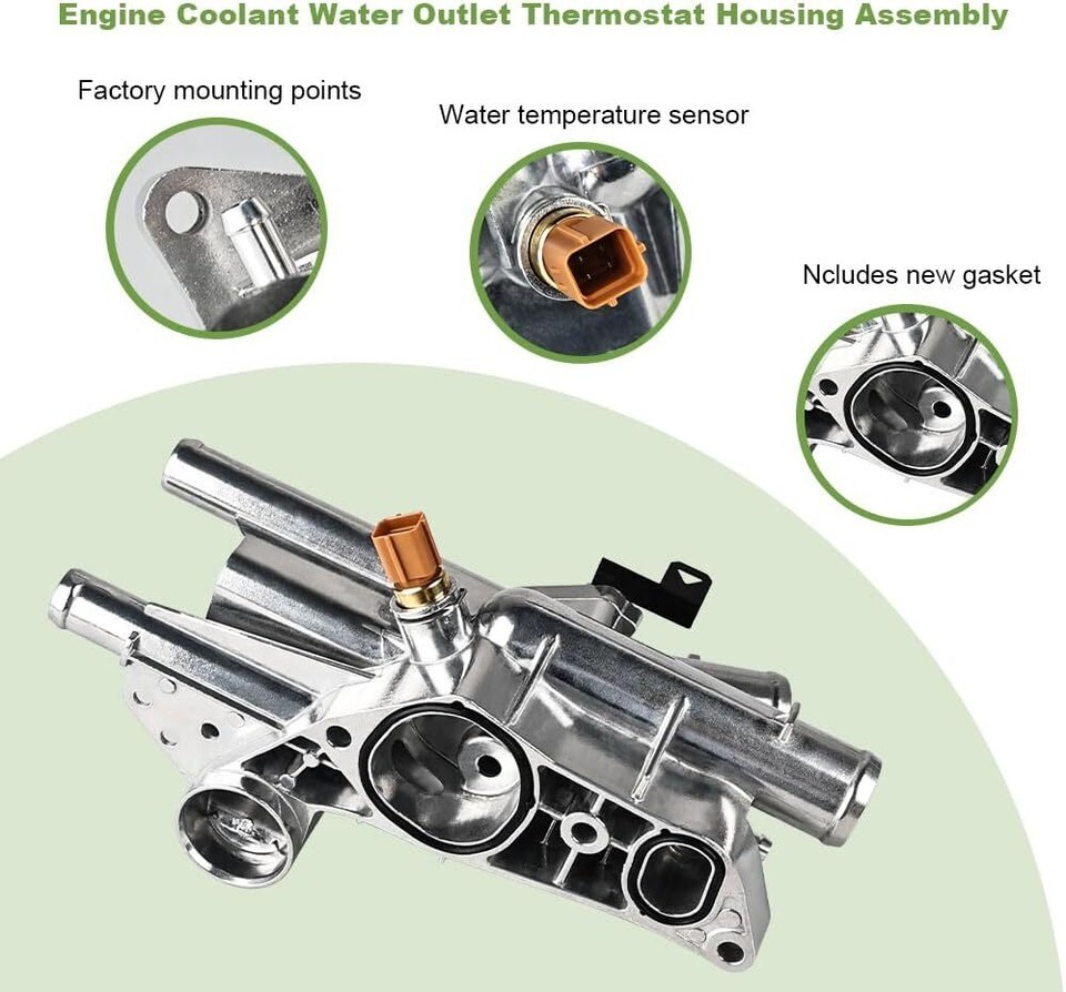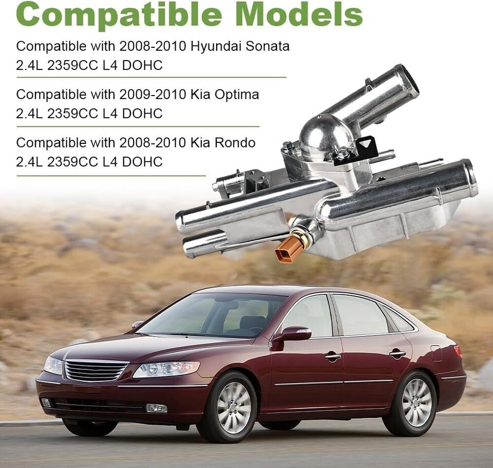 Replace Part Number: Housing assembly replacement for 256002G600, 25600-2G600, 25600 2G600 Adaptation Model: Compatible with 2008-2010 Hyundai Sonata 2.4L 2359CC L4 DOHC, Compatible with 2009-2010 Kia Optima 2.4L 2359CC L4 DOHC, Compatible with 2008-2010 Kia Rondo 2.4L 2359CC L4 DOHC Upgraded Material: The aluminum thermostat with better heat dissipation performance, greatly improving quality and service life, more wear resistance, corrosion resistance, high temperature resistance Replace Thermostat Housing Assembly: Adjust the coolant flow through the radiator to maintain the engine at its stable operating temperature and prevent overheating. Appropriate temperature control can improve fuel efficiency Accordance with OE standards: Easy to Install, direct to replace the old parts. You may not need to go to your local auto repair shop to solve your problem, which will save time and bring you peace of min