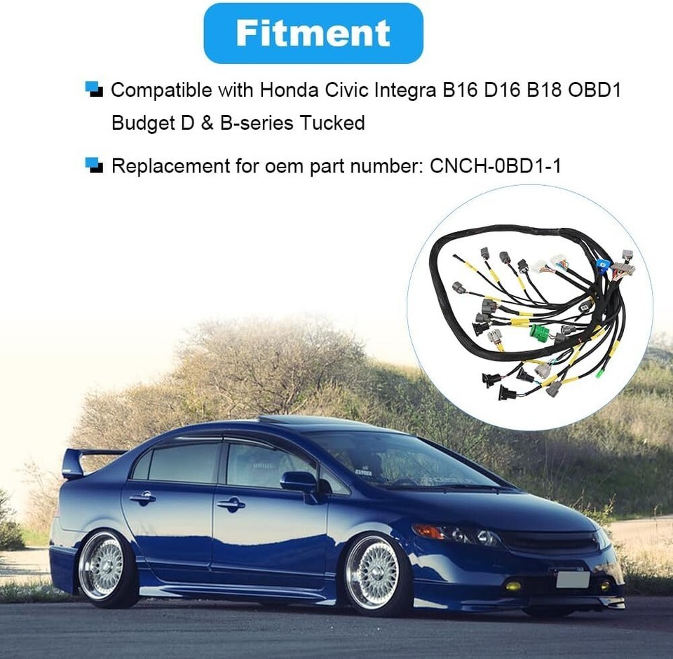 Engine Wiring Harness, Professional Standalone Wire Harness Compatible with Honda Civic Integra B16 D16 B18 OBD1 Budget D B-Series Tucked, Replacement for CNCH-0BD1-1