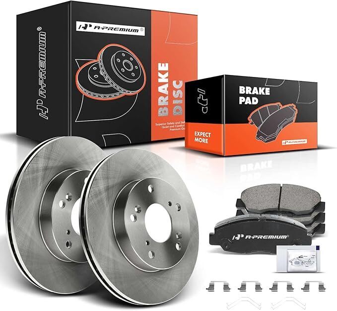 *2x Vented Disc Brake Rotor + 4x Disc Ceramic Brake Pads + Brake Lubricant + Installation Hardware