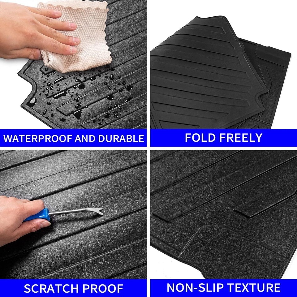 Fitment: Truck bed mat is suitable for 2020 2021 2022 2023 2024 Jeep Gladiator JT 5FT. It is based on the original vehicle and fits the size of the car. Please check the model of your car carefully before purchasing. Function: The Jeep Gladiator truck mat can prevent sand, mud, leakproof and impermeable, waterproof, scratch-resistant, easy to clean, available in all seasons.Reduce damage to the original car and make your car look more beautiful. Material:Our truck mat is made of high quality TPE,with high strength, resilience,environmentally friendly and odorless. Flexible and Durable. Easy to Install:Fast and simple installation, no tools are needed,just put it in the car. Warranty: If the car trunk mat is broken during shipping or normal use within 30 days,we can arrange a new one for free.