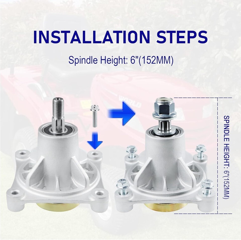 Spindle Replaces Number: Fit for Hustler 604214 Fits 52" Deck Models: Fit for Hustler Raptor, Fit for Hustler Raptor Limited Fits Models: Fit for Hustler 938563, 938571, 938589, 938597, 938605, 938613, 938977, 939165, 939223, 931741, 931899, 931998US, 932004US, 931881, 933069, 933077, 933382, 933408US 933937, 934414, 935742, 935759, 934786, 934794, 934802, 934893 Fits Models: 935734, 934505US, 934513US, 935767US, 935817, 936492, 936500, 937748, 937755, 937763, 937771, 937813, 937847, 937854, 937862, 938159, 938167 Specs: Height: 6"(152MM) . Package included 3 x Spindle Assembly