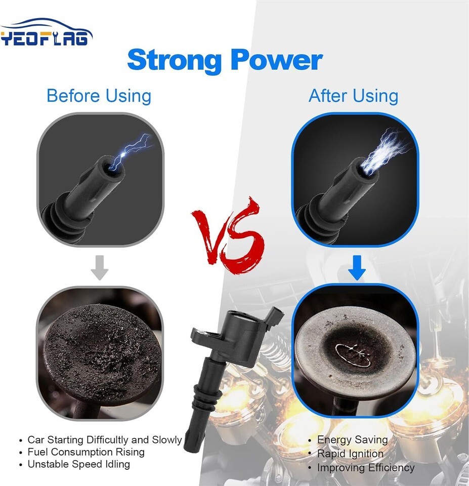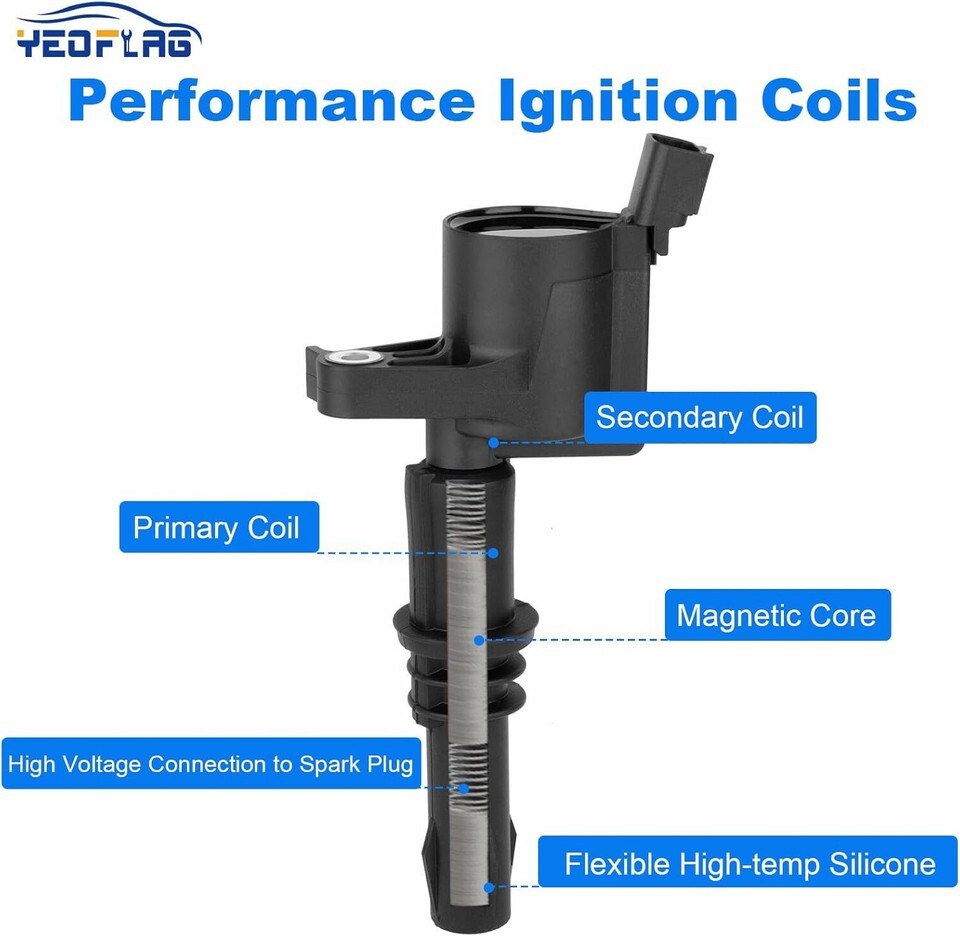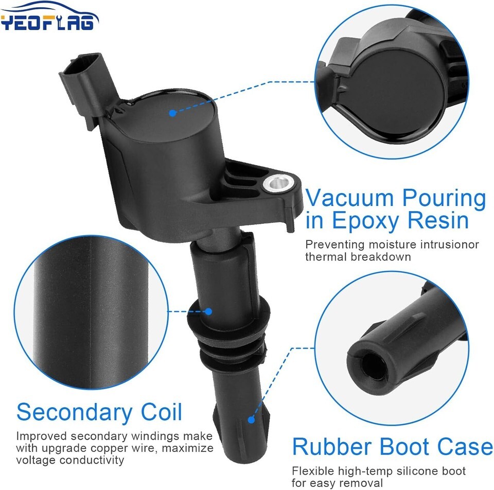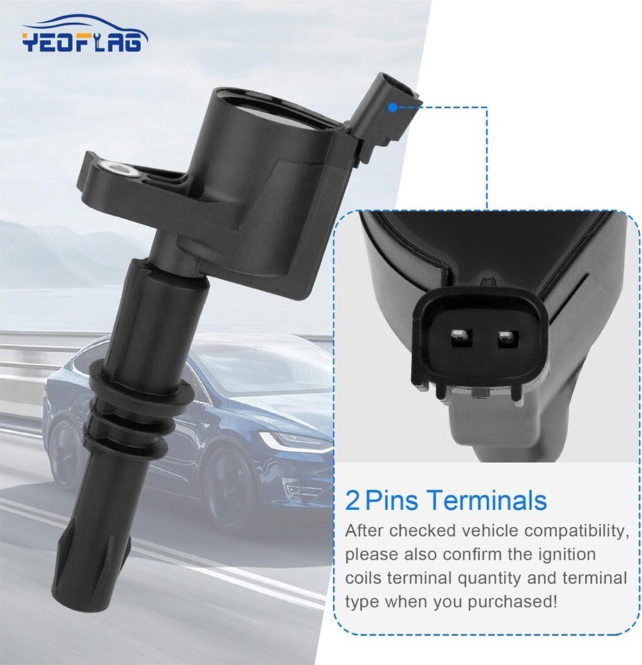 Wide Compatibility: Ignition Coil Pack Compatible with Ford: for Expedition 2005-2008, for Explorer 4.6L V8 2006-2008, for Explorer 4.6L V8 2007-2008, for F-150 5.4L V8 2004-2008, for Mustang 4.6L V8 2005-2008; Fit for Lincoln: for Mark LT 2006-2008, for Navigator 2005-2008 Wide Compatibility: Ignition Coil Pack Compatible with Ford: for F-250 Super Duty 5.4L 6.8L V8 2005-2008, for F-350 Super Duty 5.4L 6.8L V8 2005-2008, for F-450 Super Duty 6.8L V10 2005-2008, for F-550 Super Duty 6.8L V10 2005-2008, for Lobo 5.4L V8 2008-2008; Fit for Mercury Mountaineer 4.6L V8 2006-2008 Replaces for Part Number: Yeoflagtrade Ignition Coil Pack Replaces for C1541, 3L3Z12029BA, 3L3E12A366CA, 5C1584, DG-511, FD-508, UF-537, DG511, FD508, C1659, C1541, GN10182, 50082, UF537, 3L3U12A366BB, E508, FD503, 50082, 601000, 11054, 3L3E 12A366 Set of 8 Ignition Coil Pack: Yeoflagtrade ignition coil acts as a transformer, utilizing electromagnetic induction to generate the high voltage required for efficient combustion in the engine. Undesirable problems such as backfiring, vehicle stalling, engine jerking, rough idling poor power and so on, will be solved after replacement Note: 2-Pin Count. The number of ignition coils in the car depends on the car engine, model, and year. Please check the ignition coil part number or use Amazon's vehicle fitment tool on the top of the product detail page to confirm if the part is compatible with your vehicle before placing an order