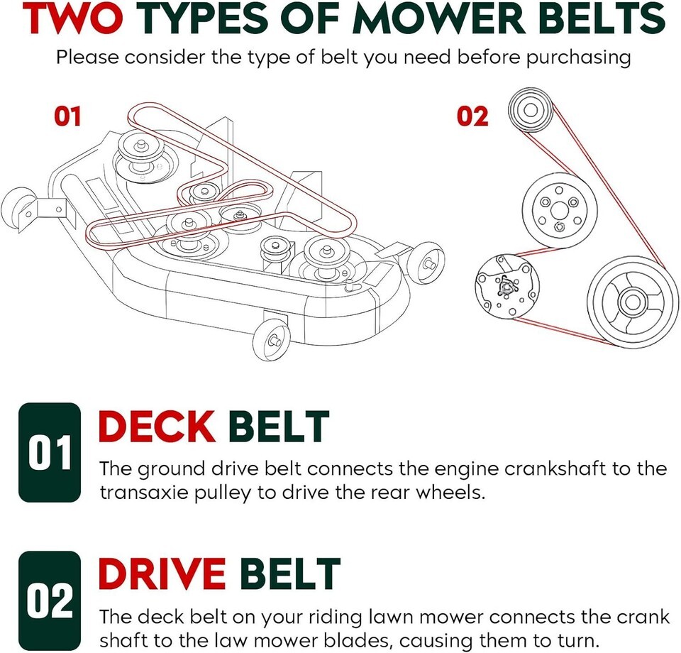 2. If you are not 100% positive about the size of the mower belt, use a piece of rope or string to determine the ID (Inside Diameter) and OD (Outside dimension). Or if your old belt is no longer good, cut it in half and measure the overall length. This measurement will give you the OD. Then subtract 3" to determine the ID.