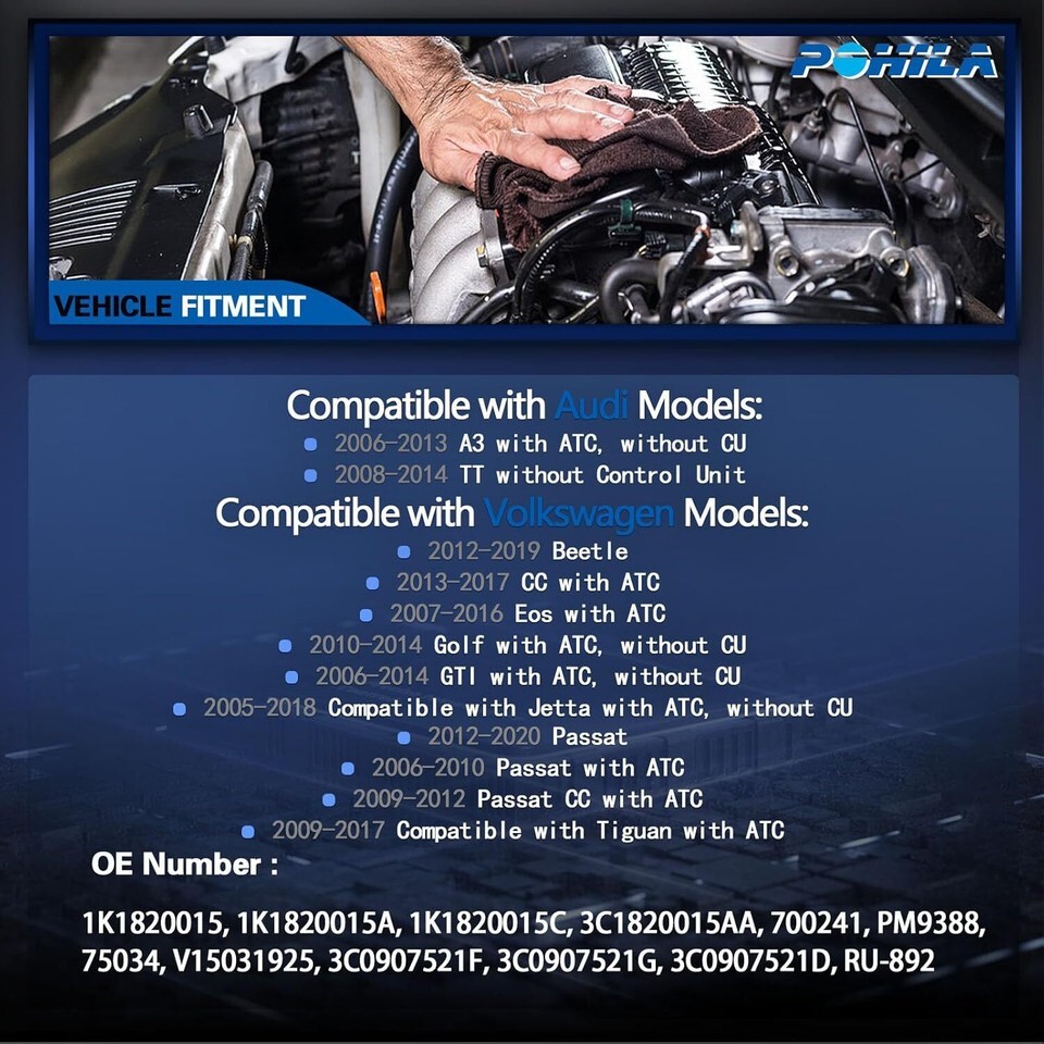 ?OEM Part Number?OE Replacement HVAC BlowerMotor,DirectlyFit.ReferenceNumber:1K1820015,1K1820015A, 1K1820015C, 3C1820015AA, 700241, PM9388, 75034, V15031925, 3C0907521F, 3C0907521G, 3C0907521D, RU-892. Same Dimensions as OE part, Directly Fit; Stable characteristics and high reliability; Larger Air Volume and Lower Noise. ?Fitment?Compatible with Audi A3 2006-2013, Audi TT 2008-2014, VW 2012-2019 Beetle,CC 2013-2017,2010-2014 Golf,2006-2014 GTI,2005-2018 Jetta,2012-2020 Passat,2009-2017 Tiguan . It can be easily installed by simply removing a few screws. When replacing the blower motor, it is best to also replace the blower motor relay/resistor with a new one. ?Advantage Of The Motor?Wind power strong. Adopt new technology and excellent production equipment to make products more environmentally friendly and energy-saving.Permanently lubricated self-aligning bearings with long design life and reliable performance. ?Premium Quality?This air conditioner blower motor is made from motor-specific silicon steel and premium enameled copper wire and is manufactured to OE specifications for direct installation without modification. Designed to keep your vehicle's HVAC system in top shape. ?Service Warranty?For any pre or after-sale replacements or performance questions or solutions, just email us and we will provide a professional, friendly, and supportive reply within 24 hours.Do check your car model in the "amazon confirmed fit" in the top left corner before ordering.
