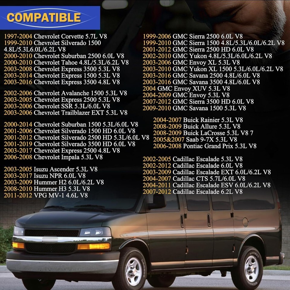 For Cadillac: 02-05 Escalade 5.3L?02-12 Escalade 6.0L?07-12 Escalade 6.2L?03-09 Escalade EXT 6.0L/6.2L?04-11 Escalade ESV 6.0L/6.2L?04-07 CTS 5.7L/6.0L.