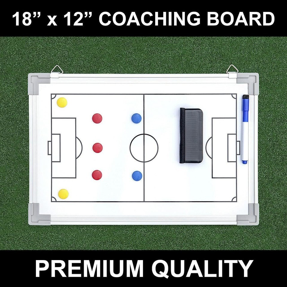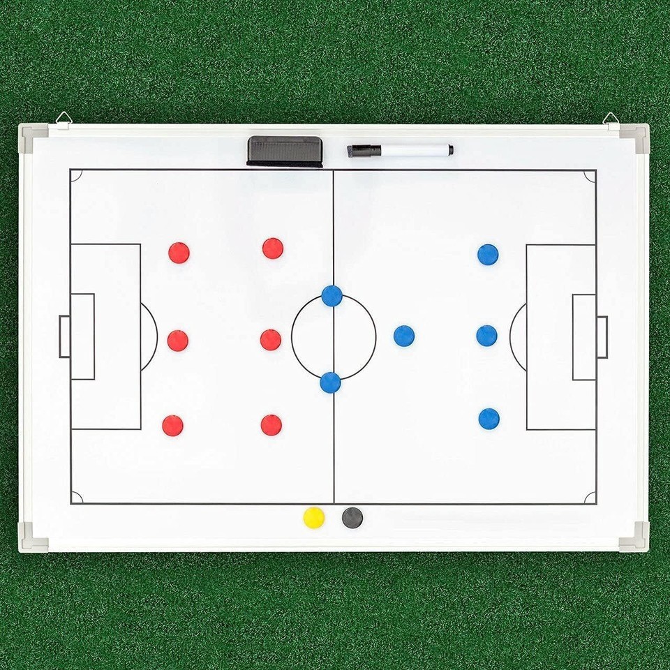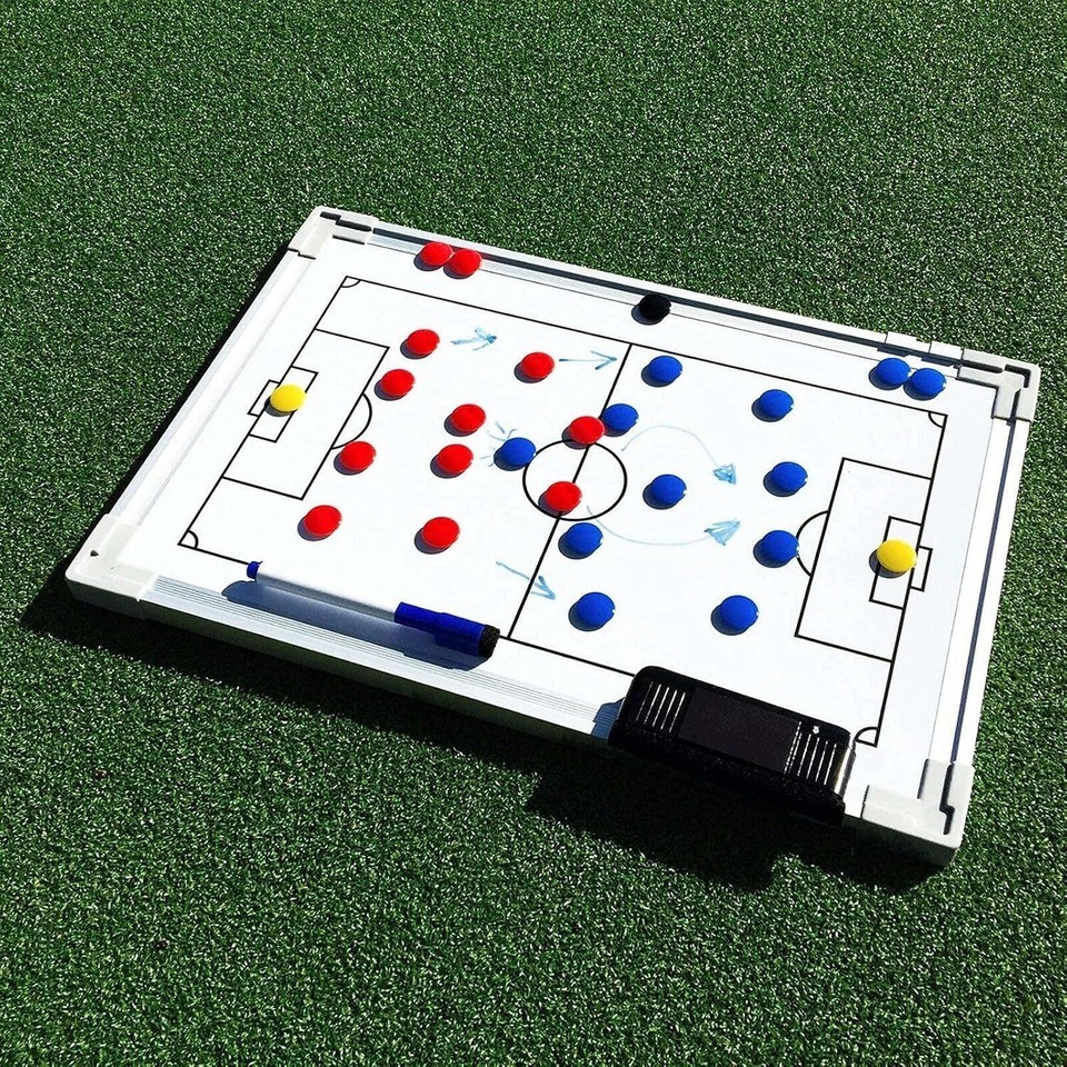 ?Double-Sided Whiteboard Tactics Board? The football tactical board has two sides, which can meet your different tactical demonstration needs. You?ll be able to clearly display your tactics on a focused and zoomed out football field. ?Strong and Durable? Made with a strong aluminum frame which has hooks so you can hang your board while you explain your tactics. ?Quality Accessories? 27 x Magnetic Lables, 1 x tactical board, 1 x pens, 1 x eraser. You can clearly mark the player's position when using it, and use a pen to demonstrate the mark to make your strategy presentation more clear and vivid, and easy to wipe. 100% simulation of the football field, bright and intuitive. ?Perfect Football Tactical Board? The football tactical whiteboard can be used for tactical layout, training guidance, and technical exchange research. Suitable for use in sports fields or daily training. Perfect for the changing room, bank, during breaks, half time or break. Strategically help your team victory with this Tactical Board. ?Convenient Size + Easy-to-carry Bag? The tactical board can be reused, and the erasable whiteboard is better than the blackboard, light weight, small size, and easy to carry.