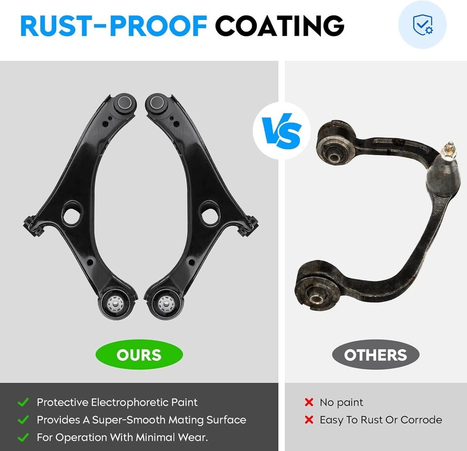 ?Replaces for Part Number: 04766910AL, 04766911AL, 4694855, 7B0422811, 68032249AA; Also replaces K622034, K622033, K7258, ES800403, ES80646 ?Compatible with: for Dodge Grand Caravan 2008-2018; for Chrysler Town Country 2008-2016; for Volkswagen Routan 2009-2010 ?Kit Includes: 1x Front Lower Passenger Side Control Arm Assembly, 1x Front Lower Driver Side Control Arm Assembly, 2x Front Sway Bar End Link, 2x Front Outer Tie Rod End Link, 2x Front Inner Tie Rod End Link ?High Quality: Be made of premium quality material and undergo impact, wear and fatigue testing to help ensure quality and durability. ?Warranty Support: 18-month warranty. Any problem, feel free to contact us.