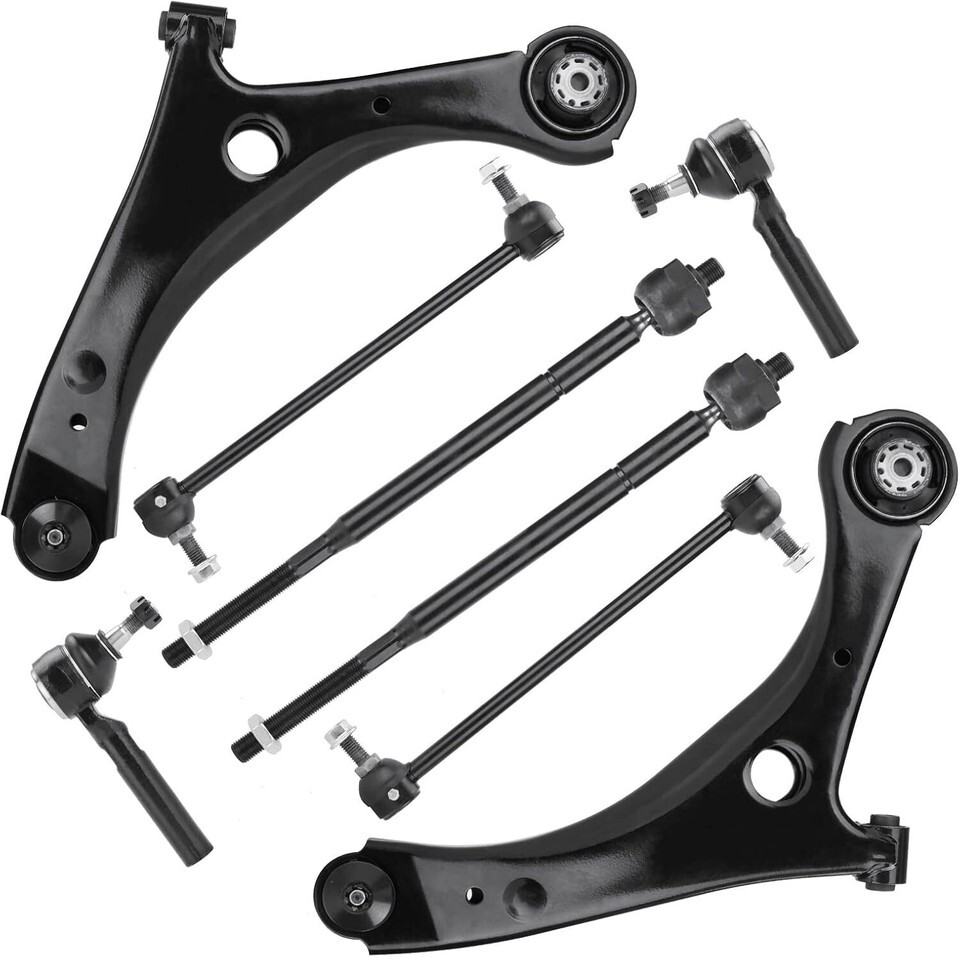 8PCS Front Lower Control Arm for Dodge Grand Caravan 2008-2018, for Chrysler Town Country 2008-2016, for Volkswagen Routan 2009-2010, Sway Bar + Outer Tie Rod End Link Suspension Kit K622034 K622033