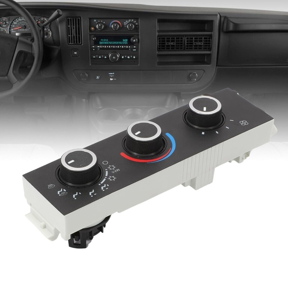 Replaces part number: 599-217, 15130959, 15191308, ?15073274, 15773678, 15858578, 16238445, 25753629, 84106610, 19370220, 23283455, 9375795, 93804402, 94666468, 84288985, 84555663, 84793087. Compatibility: The blower control is compatible with Chevy G30 1996-1996, Astro 1996-2005, Express 1500 1996-2014 , Express 2500 1996-2020, Express 3500 1996-2020, Express 4500 2009-2013, C6500 Kodiak 2003 2009, C7500 Kodiak 2003-2009, C4500 Kodiak 2005-2009, C5500 Kodiak 2009-2009. Compatibility: The heater control module Compatible with G3500 1996-1996, Safari 1996-2005, Savana 1500 1996-2014, Savana 2500 1996-2020, Savana 3500 1996-2020, Savana 4500 2009-2016, C4500 / C5500 / C6500 / C7500 Topkick 2003-2009. Material: This hvac control switch is made of high-quality material to ensure reliable performance and not easy to damage. Package includes: 1 x Control aire acondicionado.