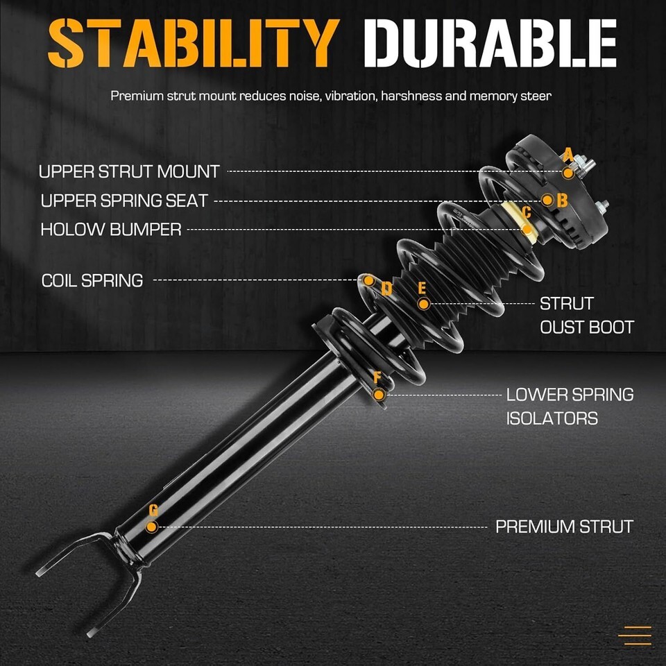 [Compatible Models] The Front Strut Fit for Dodge Charger SE RWD 3.6L 2012-2013; Fit for Dodge Charger SXT Plus RWD 3.6L 2014-2016 2018. Fit for Dodge Challenger R/T RWD 5.7L 2012-2014; Fit for Challenger Rallye Redline RWD 3.6L 2014. Please note that the selection is based on your own car model. ?Includes ?2 Pcs (1 Pair) of Complete Strut Assembly which Equiped with Strut, Coil, Spring and Mounts. Replace Complete Strut Assembly: 472665 [Improved Safety] The Shocks Absorber are designed to improve your car's safety by providing increased stability and control on the road. They provide a smooth and comfortable ride while enhancing your car's handling and control on the road [Durable Construction] Constructed with high-quality materials to deliver long-lasting durability and reliability. Their strong build ensures that they withstand the toughest driving conditions and last for many miles to come. [Easy Installation] These Shocks are easy to install and require no special tools or skills. The installation process quick and straightforward.
