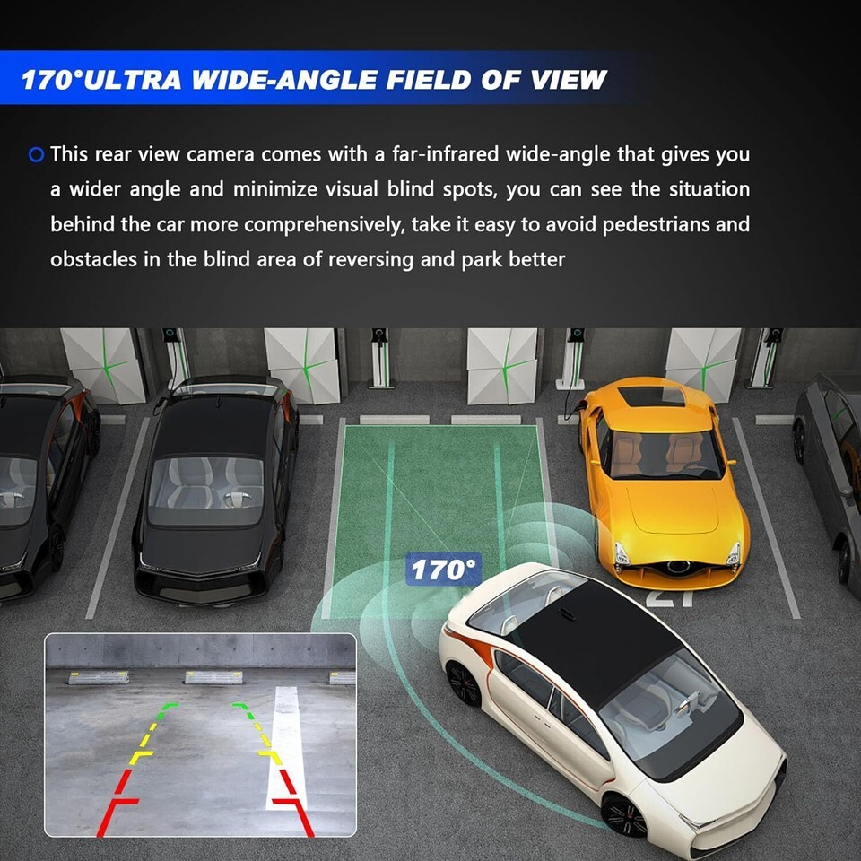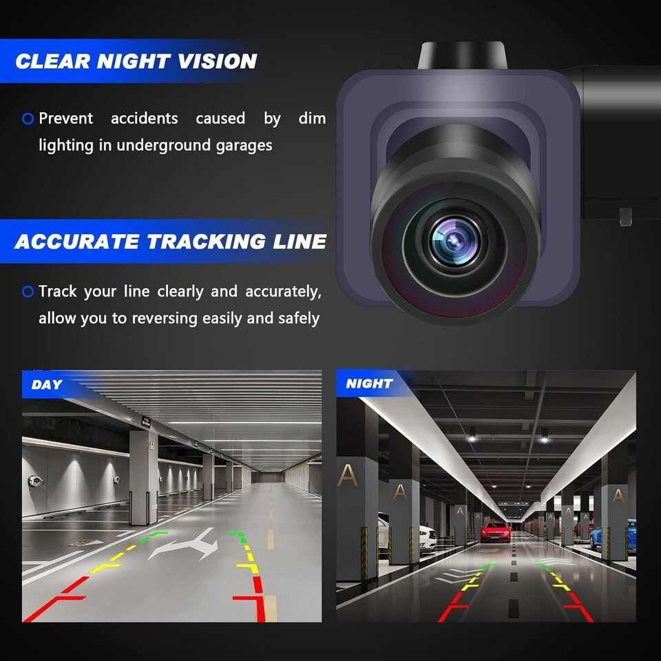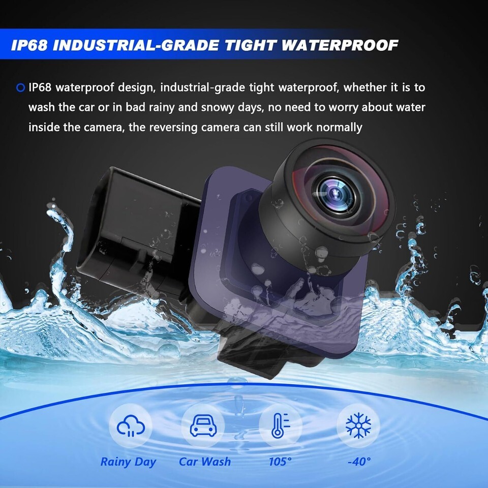 ? ?REVERSING PARKING ASSIST?The rear camera has a high quality camera display image with clear imaging when backing up, prevent accidents caused by a blind spot when reversing and dim lighting in underground garages ??HD Color Night Vision?The car backup camera adopts glass-plastic hybrid lens with stable performance, it can present delicate and high-definition pictures day and night, provide a great visual effect experience ??170ULTRA WIDE-ANGLE?Our park assist camera allowes you to see the situation behind the car more comprehensively, directly reducing the risk of reversing, and avoiding pedestrians and obstacles in the blind area of reversing ??PRECISE TRACKING LINE?The color distance line changes follow to your vehicle, the curved white track lines follow Steering wheel, clear and accurate, allow you to reversing easily and safely ??IP68 LEVEL WATERPROOF?IP68 industrial-grade tight waterproof, whether it is to wash the car or in bad rainy and snowy days, no need to worry about water inside the camera, the reversing camera can still work normal ??DURABLE AND RELIABLE?The camera is made with upgraded camera lens and a far-infrared wide-angle camera device that gives you sharper resolution and a wider angle. The housing is made of reinforced PA66 with 30% glass fiber, which has stronger rigidity and toughness, corrosion resistance and high temperature resistance ? ?PERFECT FITMENT?Perfectly compatible with 2015-2019 ford transit cargo passenger, help you avoiding pedestrians obstacles, reversing parking safely and accurately