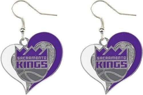 NEW WOMENS SACRAMENTO KINGS NBA TEAM SWIRL HEART EARRINGS BY AMINCO JEWELRY