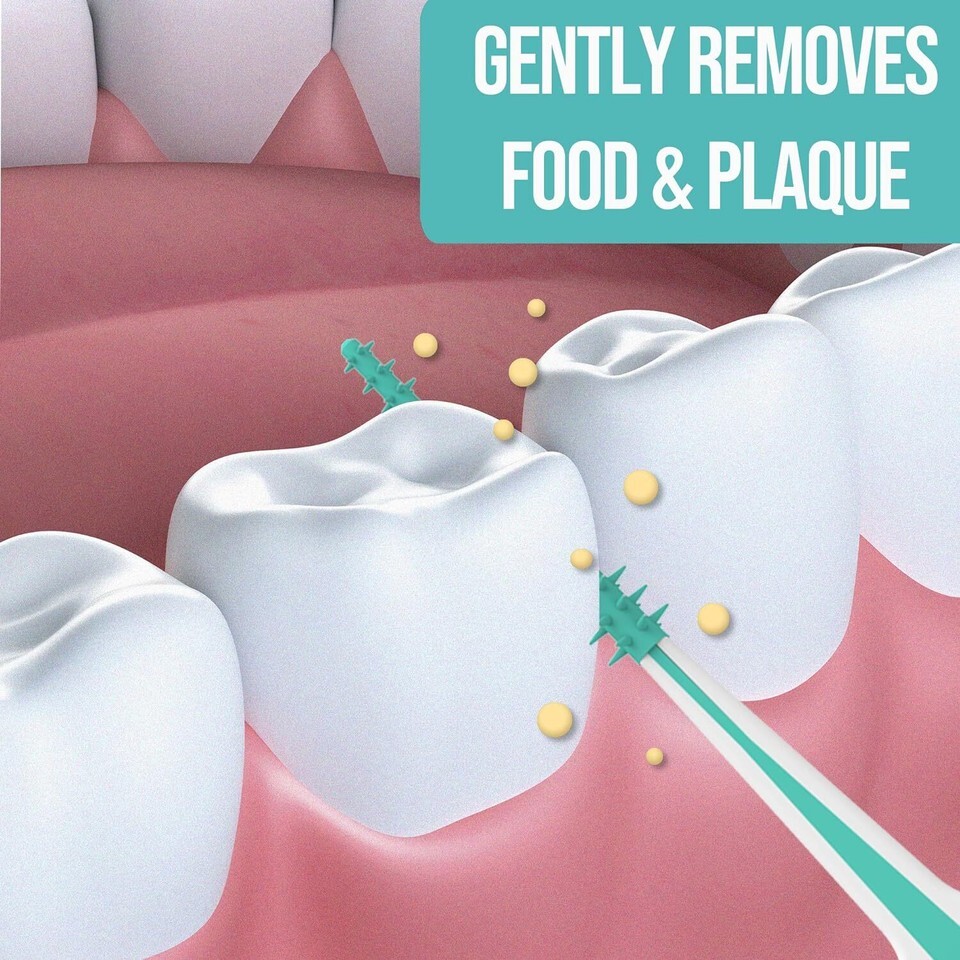 FLEXIBLE BETWEEN TEETH CLEANERS: Soft flexible pick sild between teeth and remove the food debris and plaque. COMFORTABLE RUBBER BRISTLES: Comfortable flexible bristles massage and stimulates gums. MEET THE MULTPLE NEEDS: Great for braces, implants and bridges. EASY GRIP HANDLE: Easy to hold and easy to use. Key Product Features INCLUDES AN ON-THE-GO CASE: On-the-go case for more convenient using.