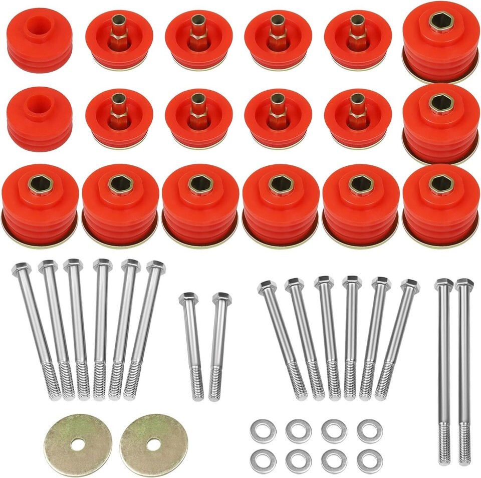 KF04060BK Body Mount Bushing Kit Compatible with Ford F250 F350 2008-2016 Super Duty 2WD 4WD Polyurethane Cab Mount Kit, Steel Sleeves, Hardware (Red)