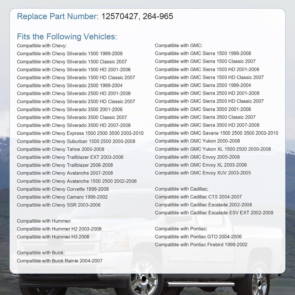 Compatible with Chevy Silverado 1500 1999-2008