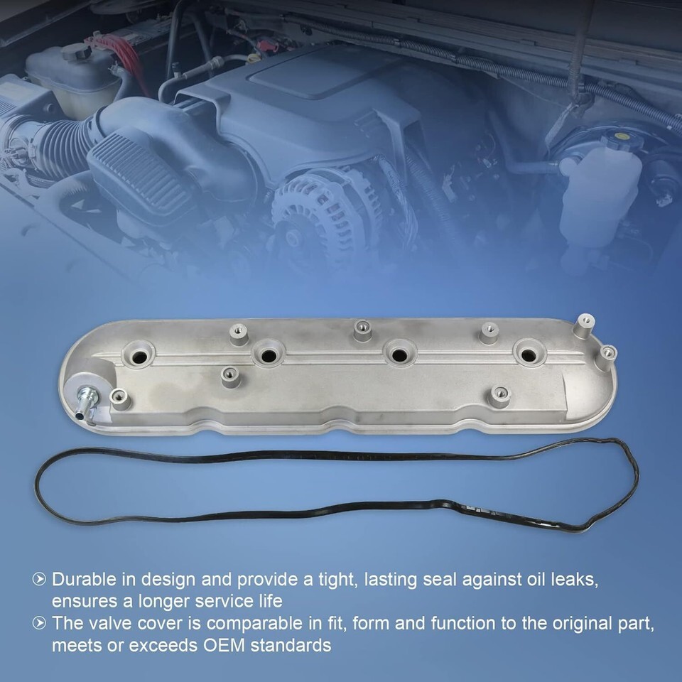 [FITMENT] Compatible with Chevy Silverado 1500 2500 3500, Express 1500 2500 3500, Suburban 1500 2500, Tahoe, Trailblazer, Avalanche, Corvette, Camaro, SSR. Compatible with GMC Sierra 1500 2500 3500, Savana 1500 2500 3500, Yukon, Envoy. Compatible with Cadillac CTS, Escalade. Compatible with Buick Rainier. Compatible with Pontiac GTO, Firebird. Compatible with Hummer H2 H3. Please scroll down to product description for complete list of model and year. [REPLACE PART NUMBER] 12570427, 264-965. [FUNCTION] Replacement for driver side valve cover. High quality Engine Valve Cover, designed to protect the cylinder head, and its components, along with sealing oil flow. [FEATURE] Our products are durable in design and provide a tight, lasting seal against oil leaks, ensures a longer service life. [OEM FIT] The valve cover is comparable in fit, form and function to the original part, meets or exceeds OEM standards.
