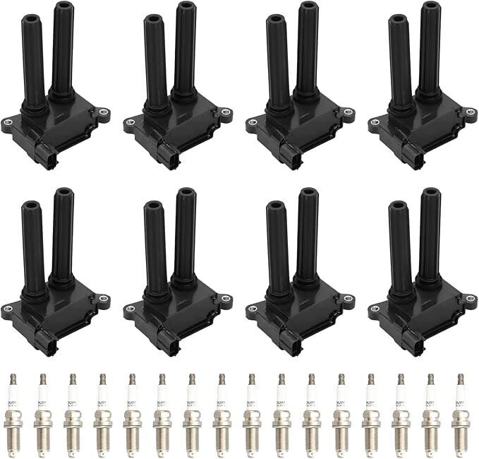 Fitment:Ignition Coil Pack Iridium Spark Plugs fit 2009 - 2018 for Dodge Challenger/2006 - 2019 Charger/2006 - 2019 Durango, 2006 - 2008 Magnum, 2006 - 2010 Ram 1500/2500/3500, 2006 - 2018 for Jeep Grand Cherokee/ Commander, 2006 - 2019 for Chrysler 300.Make Sure Fitment First. Easy Install:Every component either matches or improves on the OE design to ensure fast and easy installation with superior performance and reliability, to provide superior cold-start performance and a smoother running engine. High Quality Material:all parts of the ignition coil are designed with proven materials,including wire and wire coating that have high tolerance to high temperature,which can resist the cracks,pin holes and imperfections that most often lead to failure issues. High Quality Material:Iridium Spark Plugs have a long service life,higher ignition efficiency,better fuel economy and better ignition performance. Package:8x ignition coils and 16x Iridium Spark Plugs