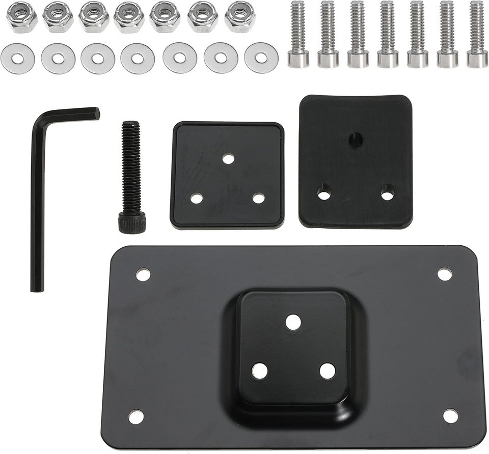 Fits: For 1973 Up Big Twins, Dynas, Sportsters,or any model with similar 3-hole bolt pattern Overall Size: 4''X7''. Mounting pattern: 1-1/4" across bottom;1-1/8" from either bottom hole to the top hole Performance: The two rubber spacers are used to control vibration and angle,allowing the angle of the mount to be raised or lowered as needed Package Included: License Plate*1 Rubber Gasket*2 and all necessary mounting hardware as picture show Note: If you have any questions, you can consult us. We are more than happy to solve your problems about the product