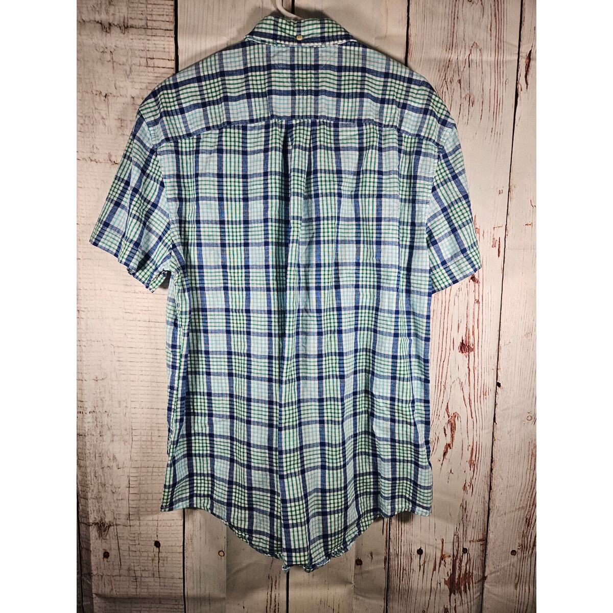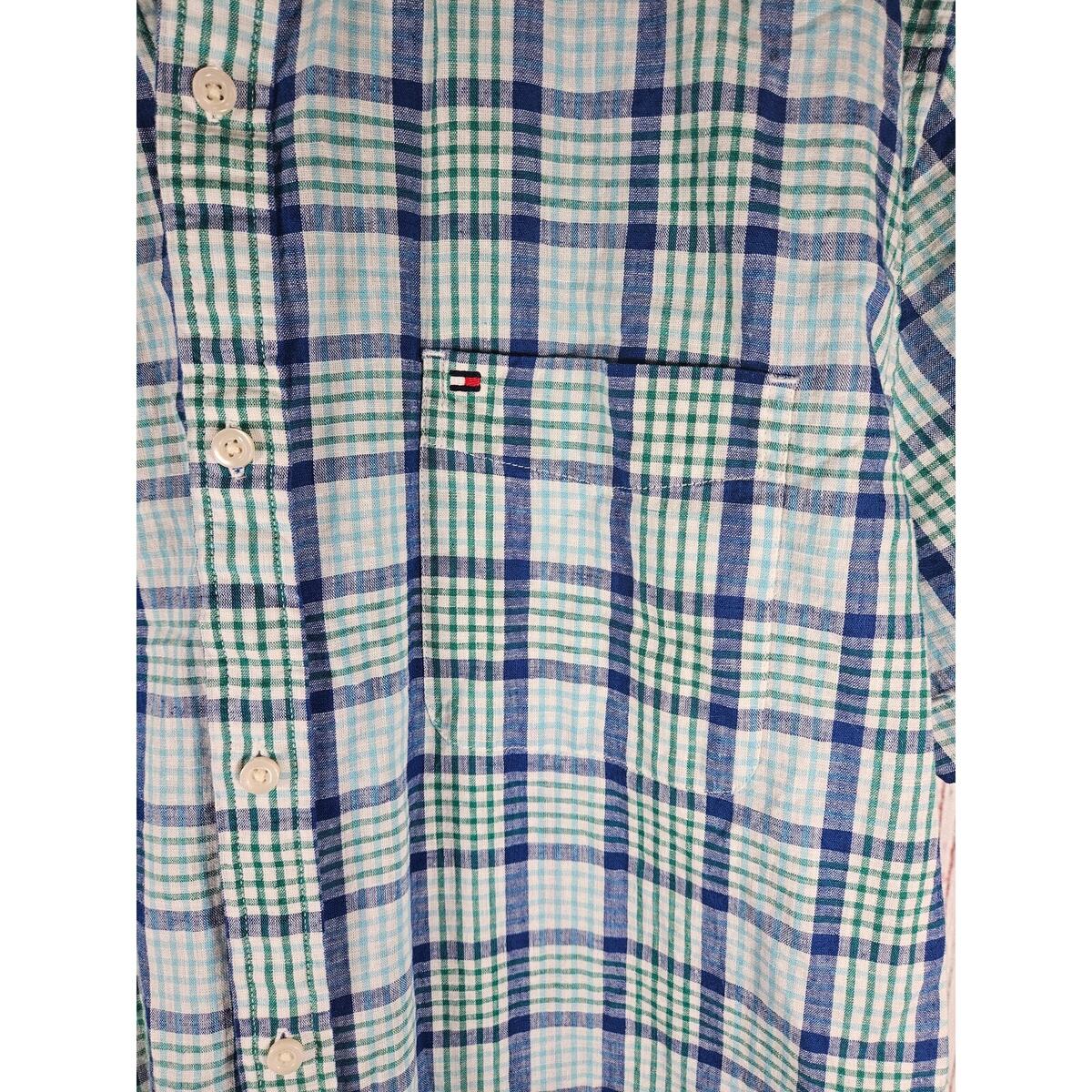 Tommy Hilfiger Mens Button Down Plaid Shirt Short Sleeve Blue Green Sz XL