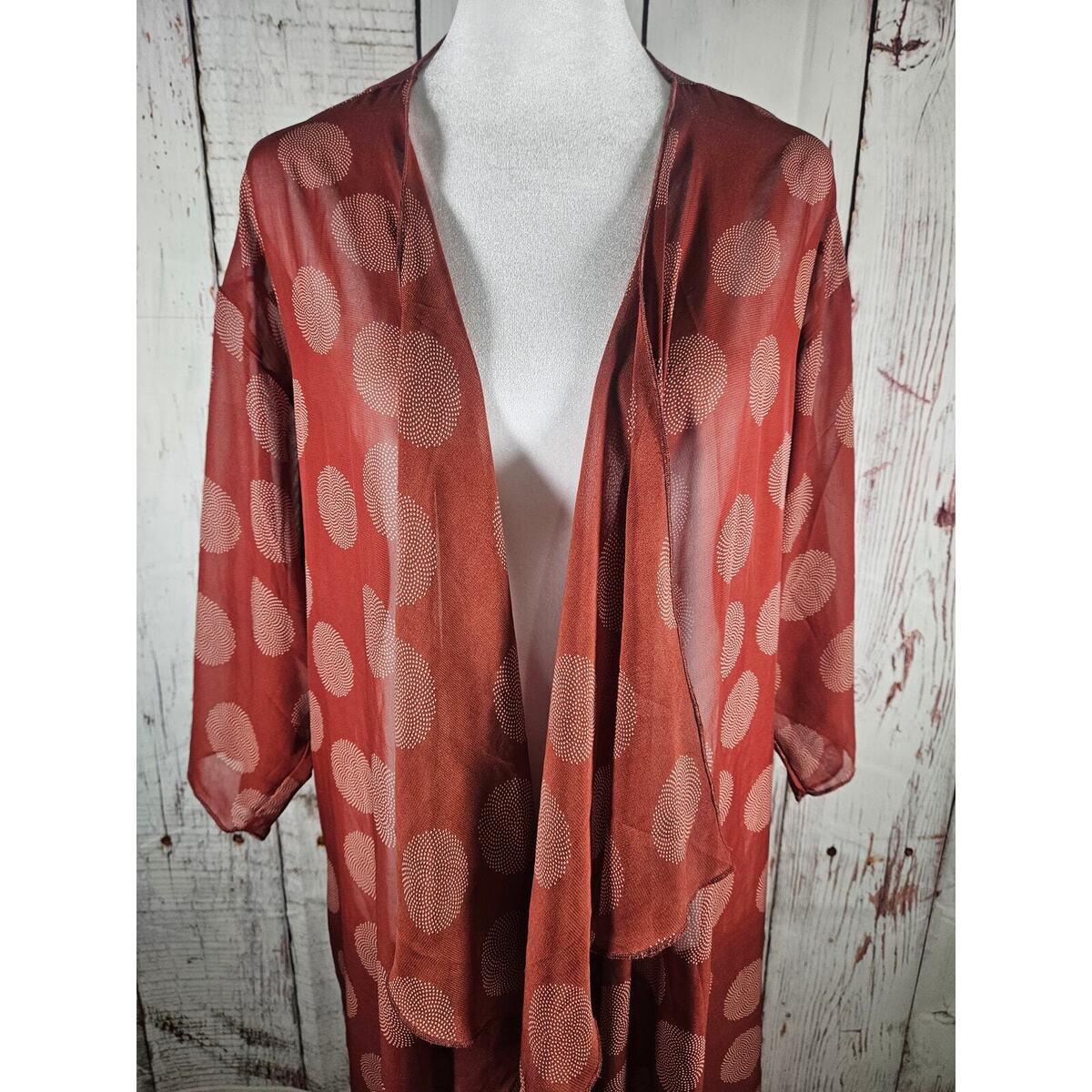 LuLaRoe Women's Lightweight Cardigan Size Medium Brick Red and White
