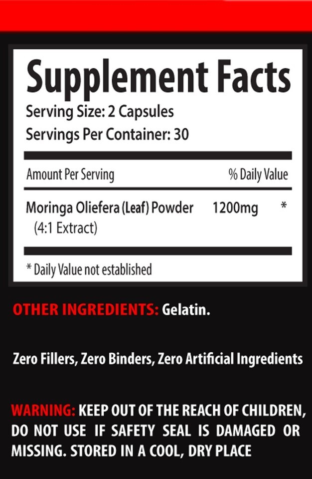 High fiber - MORINGA OLEIFERA - Organic nutrition 3 Bottles 180 Capsules