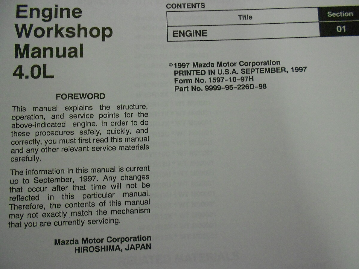 1997-2001 Mazda 4.0L Engine Workshop Service and 50 similar items