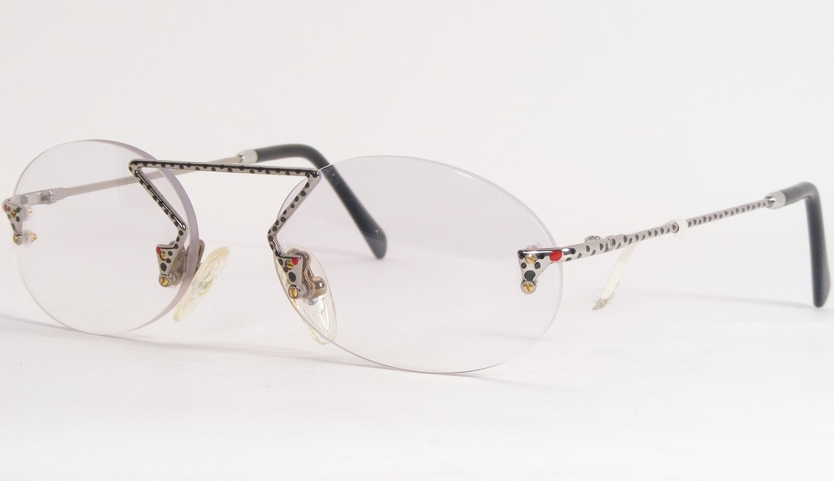 Vintage Vidi vici Silver / Black / Red Unique Rare Eyeglasses Glasse 47-20-135 mm. (H242)