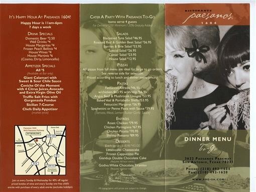 Ristorante Paesanos Dinner Menu Paesanos Parkway San Antonio Texas