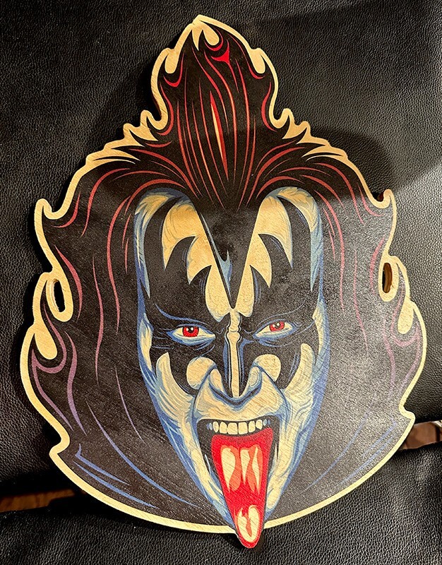 Gene Simmons of Kiss original artwork on 1/2 inch birch plywood size 12"w x 16"t