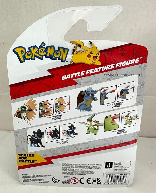 The Jazwares Pokemon Battle Feature Figure Flygon (PKW2671) is a brand new action figure depicting the Pokemon character Flygon. This collectible item stands at 12 inches tall and is made of plastic, featuring multicolor detailing. It is part of the Pokemon franchise and TV show, with a themed design inspired by animated adventures. Perfect for fans of the Pokemon series, this boxed figure is a great addition to any collection of action figures and accessories.