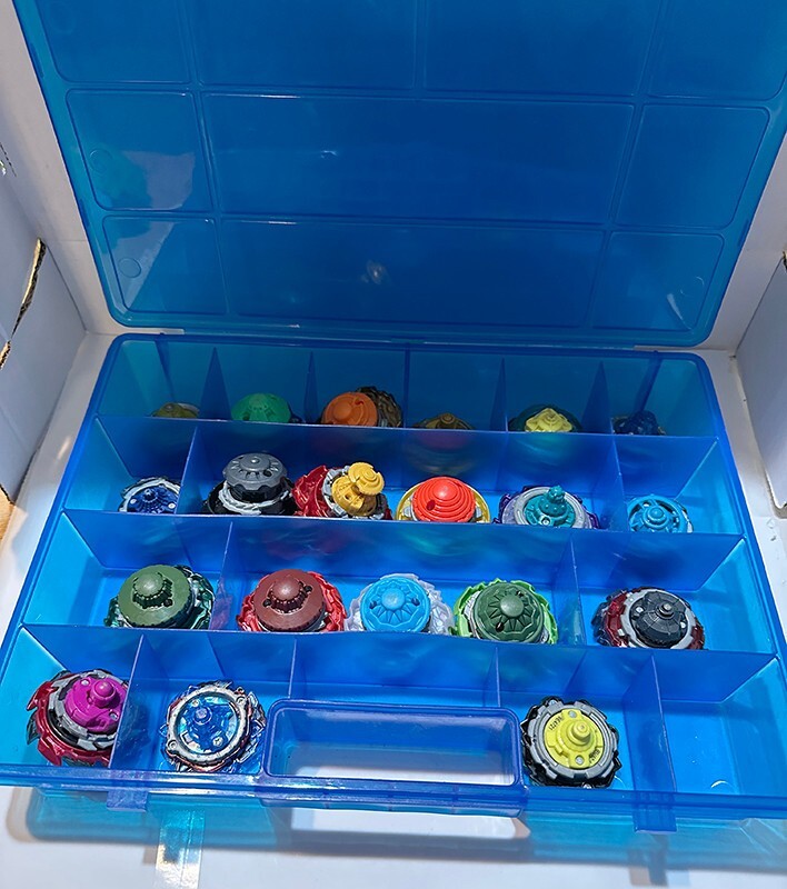 Hazbro Beyblades lot of 20 with 7 Launchers and carrying case