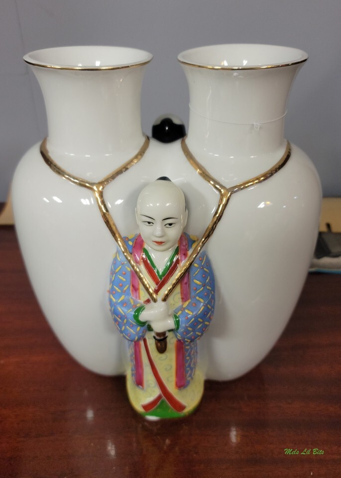 Vintage Hand Painted Enamel Double Vase wish Statue from Neiman Marcus.