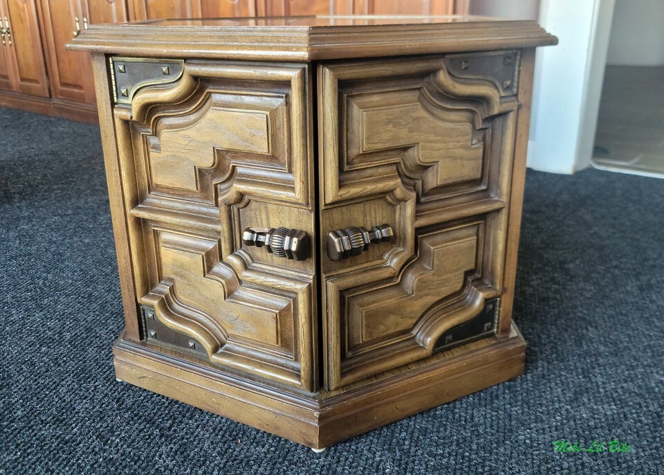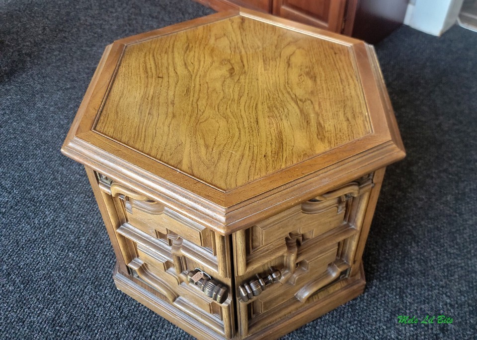 Matching Vintage Mediterranean Style Square Hexagon Side End Tables