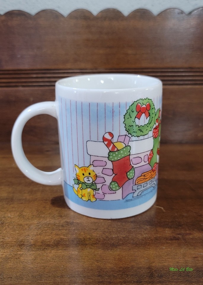 Vintage McCrory Stores White Ceramic Cartoon Santa Scene Cup Mug