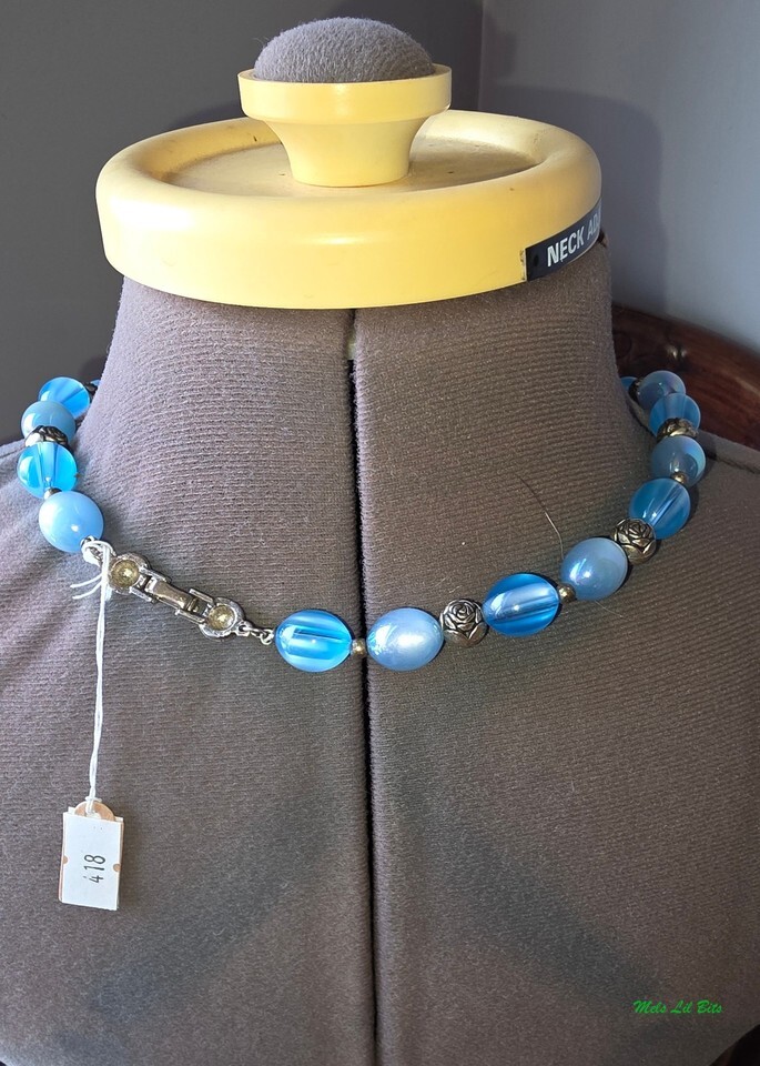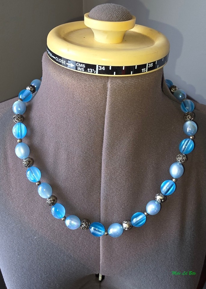 Blue Art Glass Beaded Necklace and 49 similar items