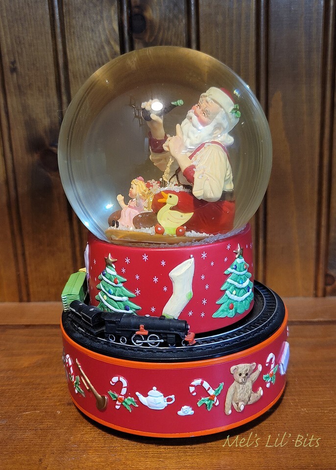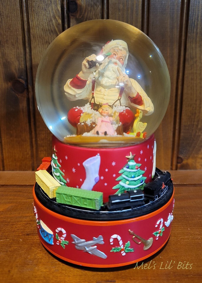 2001 Hallmark Coca-Cola Santa Musical Snow Globe Moving Train