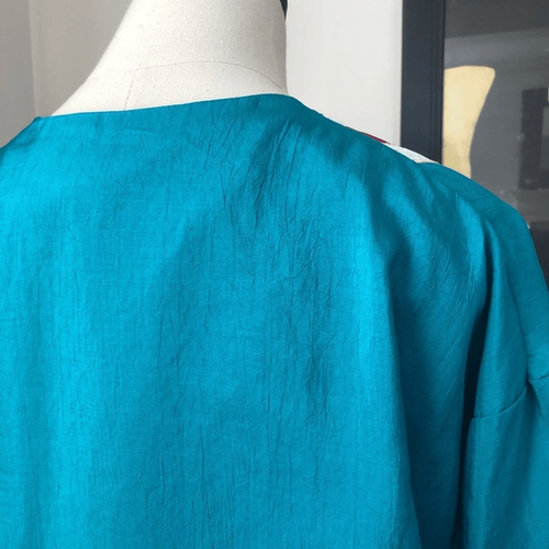 Vintage 1980s Jordana pull over windbreaker type material top made of crinkle silky polyester with folk art southwestern floral style and pleated V-neck detail. Banding at wrist and waist. Approximately 22.5 inches from shoulder to hem and 23? armpit to armpit. Featured on my size medium dress form. Approximately a size medium but could accommodate a size large